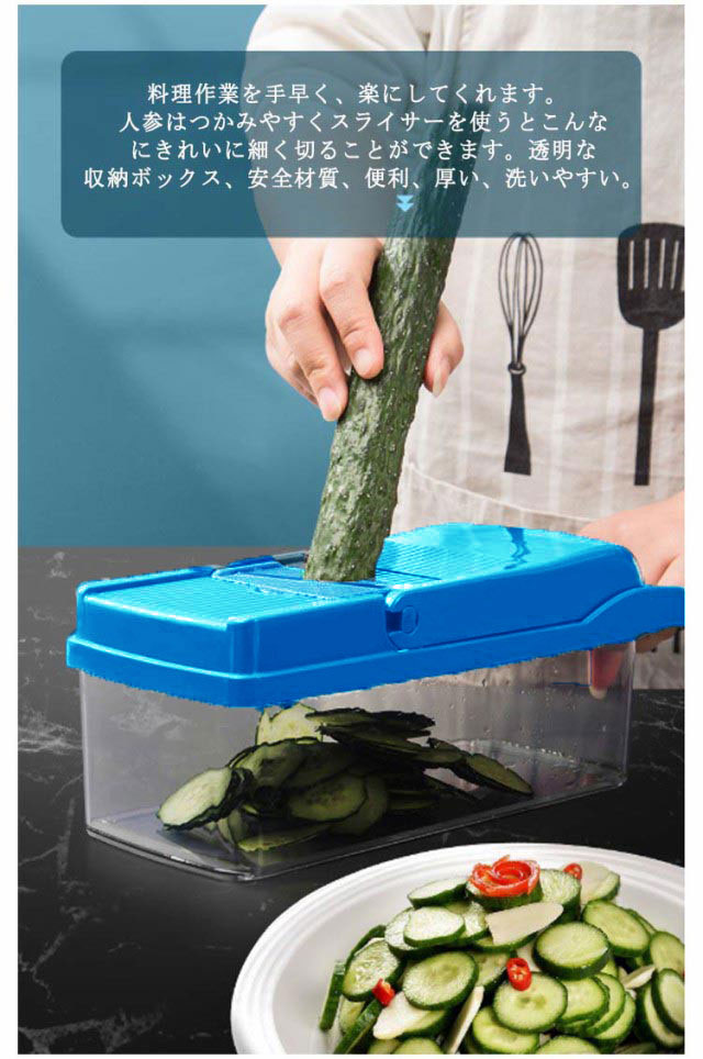 スライサー 野菜カッター 千切り 野菜薄切り 調理器 セット 厚さ調節 業務用 千切り キャベツ 大根 野菜 玉ねぎ 人参 みじん切り 野菜チョッパー おろし器 マルチスライサー ツマ切り キッチン ニンニクおろし スライス サラダ 収納