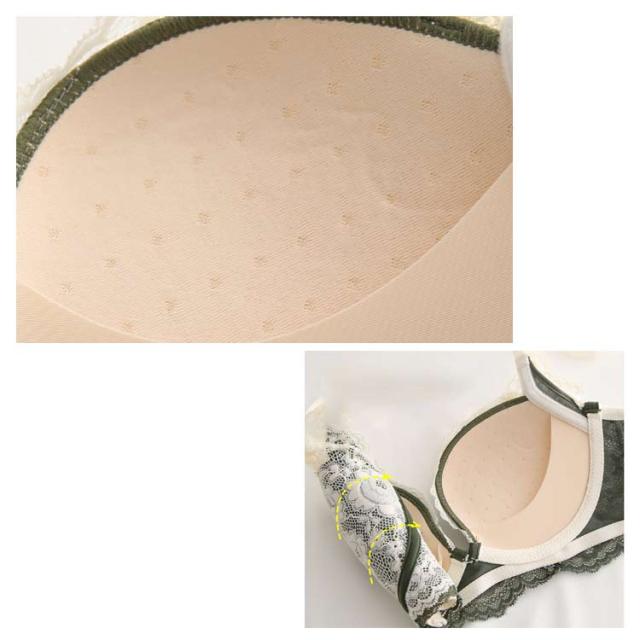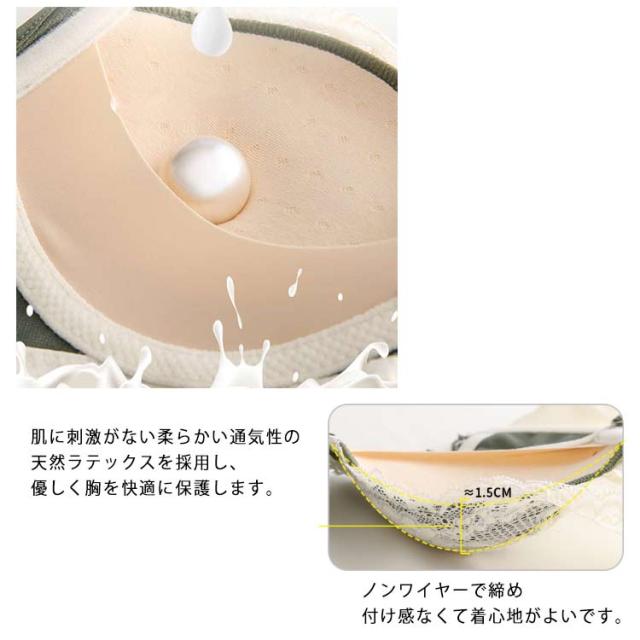 | 機能性と美観性を兼ね備えたブラジャー&ショーツセットです。 肌に刺激がない柔らかい通気性の天然ラテックスを採用し、優しく胸を快適に保護します。 ノンワイヤーで締め付け感なくて着心地がよいです。 下部に厚めのパッドを内蔵し、強力にバストを持ち上げます! 補正しながらバストをリフトアップします。 脇高デザインは、胸部の横流を防ぎ、谷間を中心へ寄せながら胸をしっかりと引きます。 胸元の深Vのデザインは美しい谷間をキープ! ブラジャーを着ていても、存在を感じられないようにリラックス感を感じさせます。 幅広なアンダーでバストをしっかりとホールドします。 クロッチ部分が二重縫製になって、通気性に優れ、快適でお肌を優しく守ってくれます。 | |