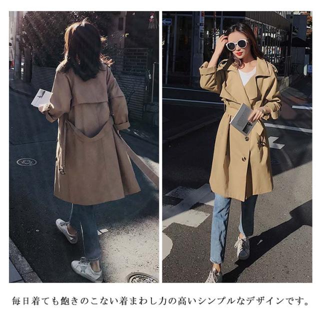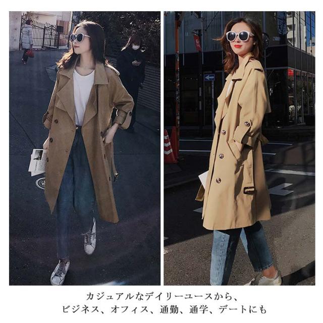 スプリングコート トレンチコート 長袖 ロング丈 レディース 無地 シンプル エレガント おしゃれ ファッション カジュアル 20代30代40代 新作