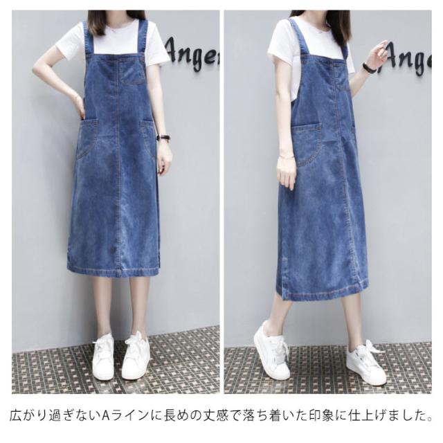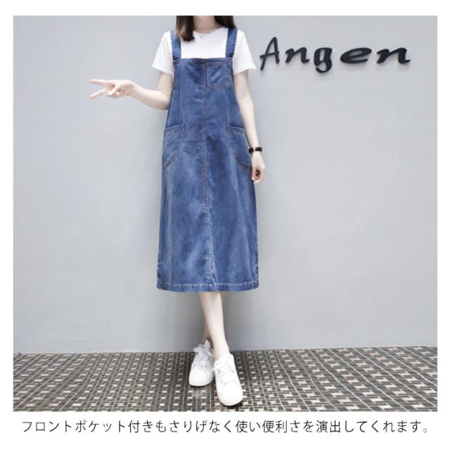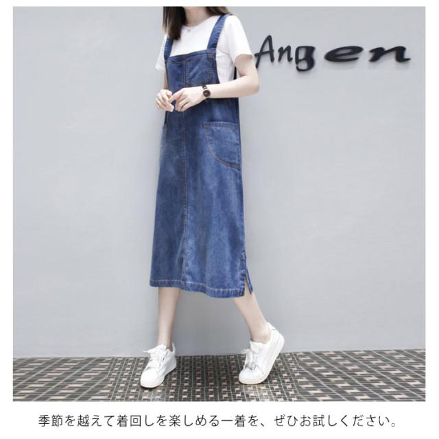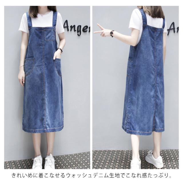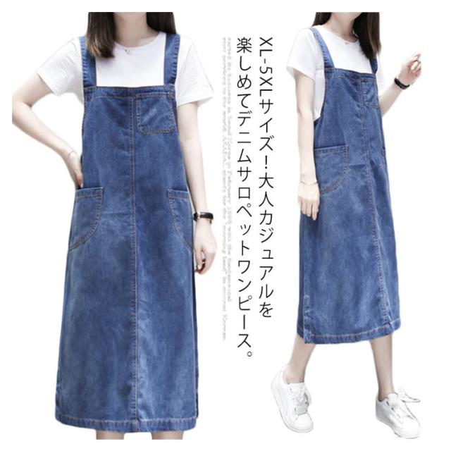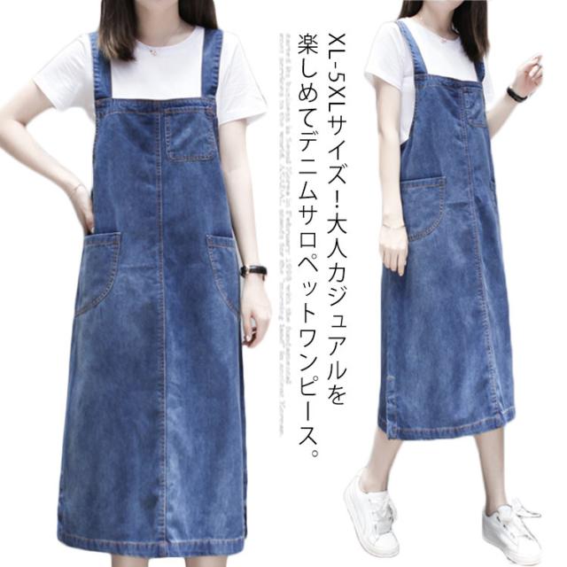 XL-5XLサイズ!ワンピース サロペット オーバーオール サロペットワンピース デニムワンピース デニムサロペット 膝下 ミモレ丈 大きサイズ ゆったり カジュアル 春夏
