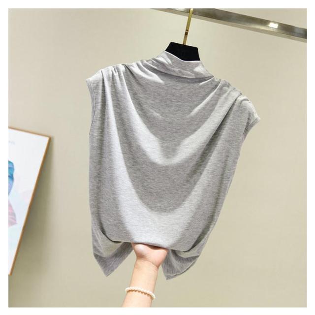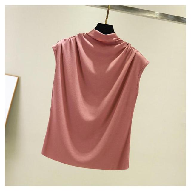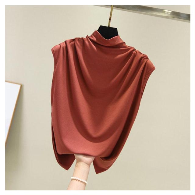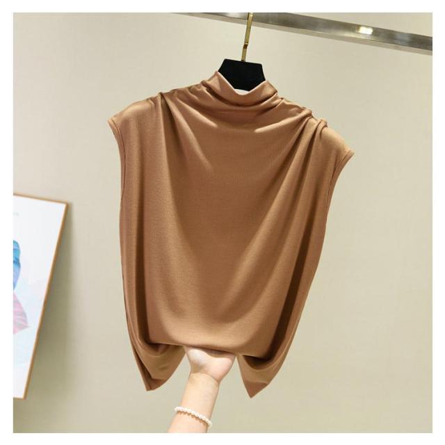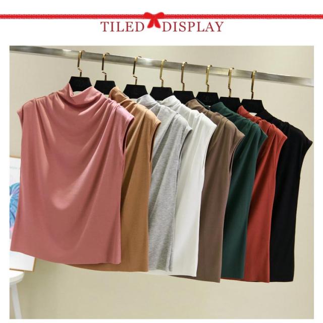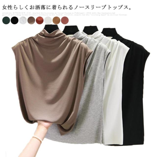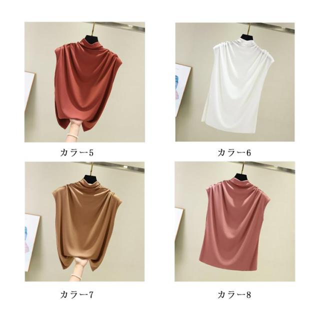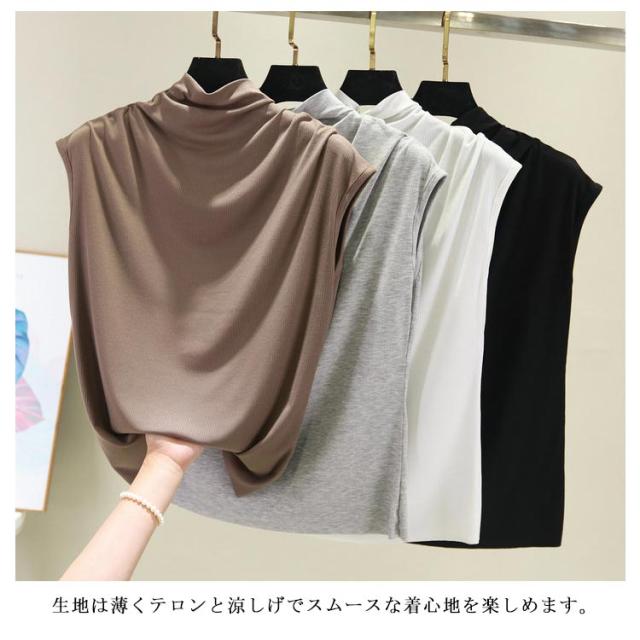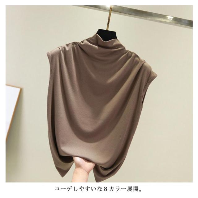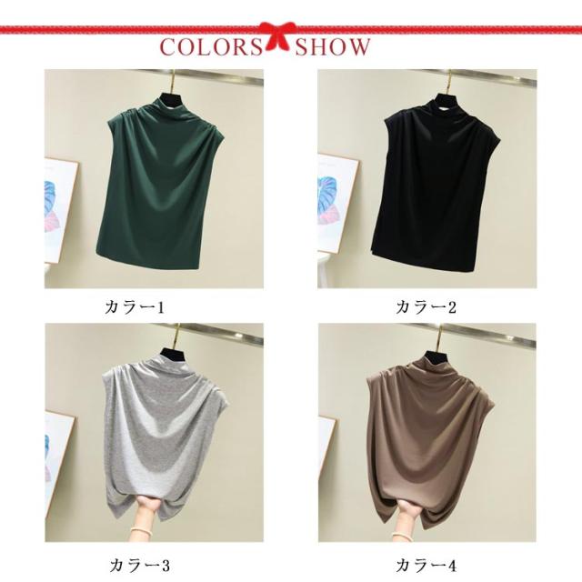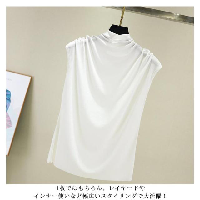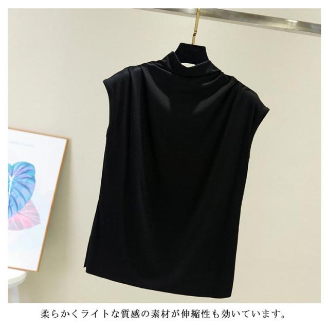 【送料無料】Tシャツ カットソー レディース ノースリーブ ハイネック タートルネック 無地 トップス インナー 重ね着 レイヤード ゆったり 薄手 春夏秋 カジュアル フェミニン 着やせ 上品 通勤 オフィス シンプル オールシーズン