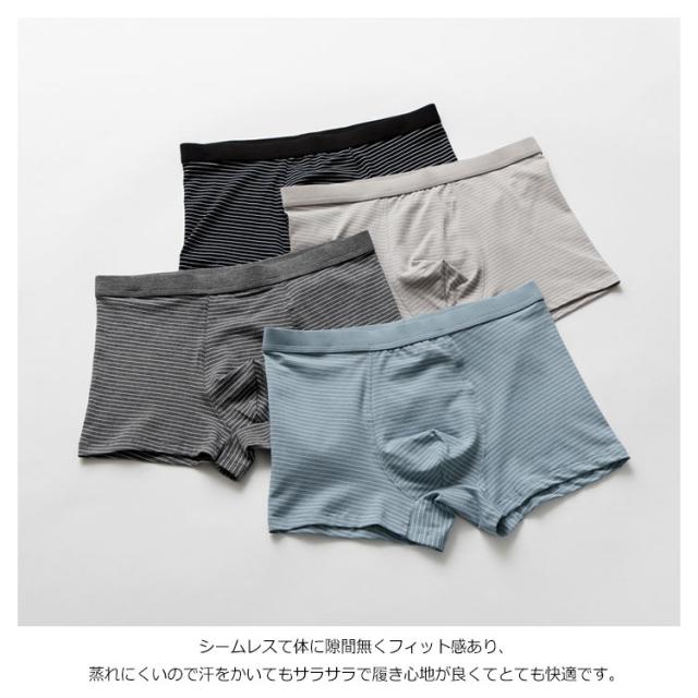送料無料 メンズ シームレスパンツ ボクサーパンツ シームレス 男性ショーツ 下着 インナー アンダーウエア パンツ モーダル 綿 ボーダー おしゃれ 通気性 蒸れにくい