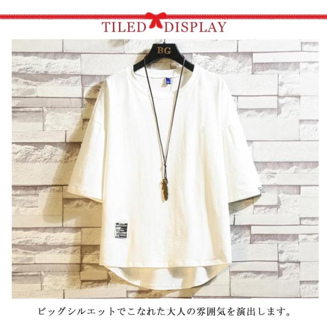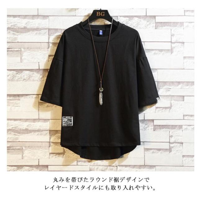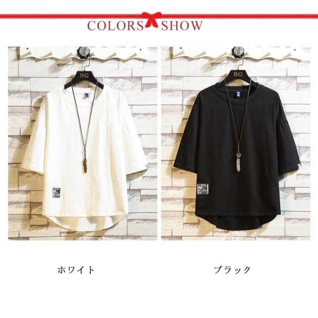 (送料無料)Tシャツ カットソー 半袖 メンズ トップス 無地 半袖 メンズTシャツ ビッグシルエット ビッグtシャツ 綿 薄手Tシャツ クルーネック ドロップショルダー ラウンドテール 部屋着 韓国 ファッション シンプル おしゃれ 軽い 涼しい 春夏秋