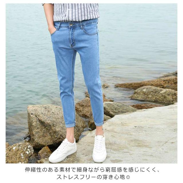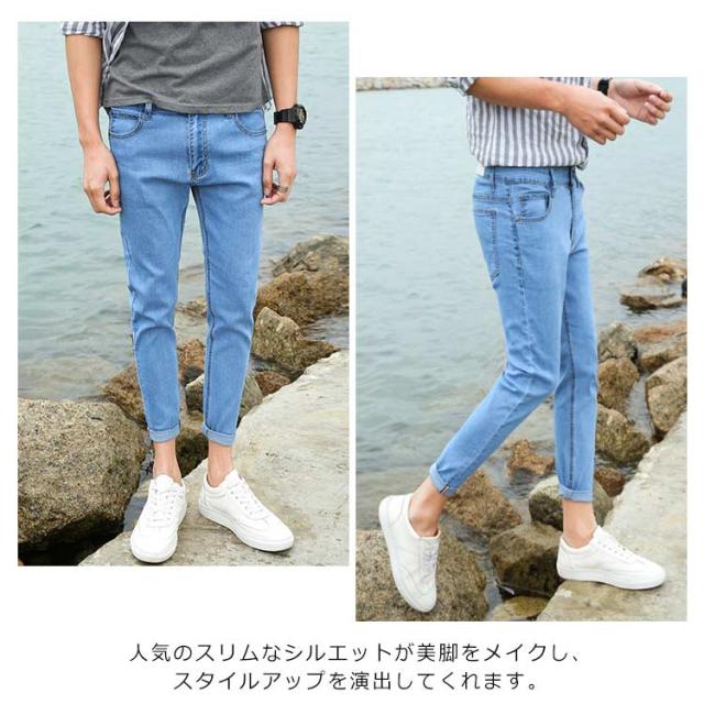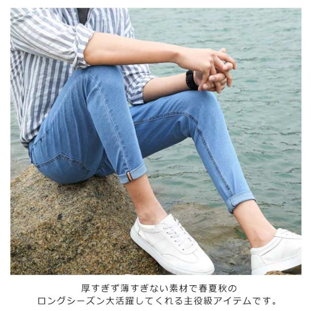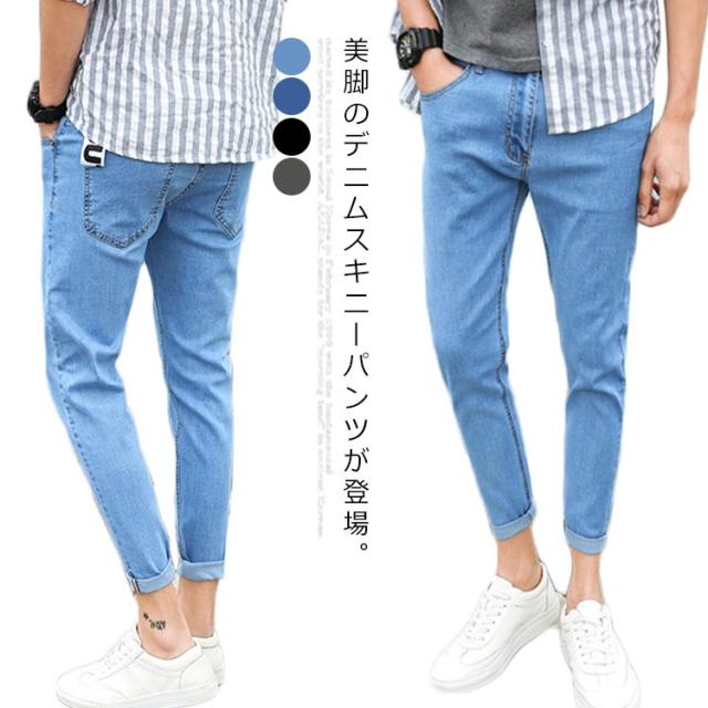 デニムスキニーパンツ テーパード デニムパンツ メンズ 細身 ロングパンツ スリム ストレッチパンツ 原宿系 アメカジ サルエル 春 夏 新作 秋 伸縮性 ジーンズ