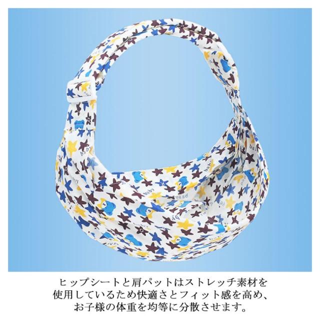 | 片手での抱っこをサポートします。 歩く事が大好きな1歳から3歳のお子さまを育てている全てのお客様に使って欲しい商品です。 取り付け取り外しがとても簡単。急な抱っこ要請・歩きたい願望にすぐ対応出来ます。 折りたためてとてもコンパクトなので持ち運びにとても便利。バックに入れても気にならない重さです。パパママの強い味方です。 ヒップシートが広がるので1〜3歳のお子様なら背中までカバーし安定感がある。 肩パットは広がるので、肩への負担を軽減。 ヒップシートと肩パットはストレッチ素材を使用しているため快適さとフィット感を高め、お子様の体重を均等に分散させます。 | |