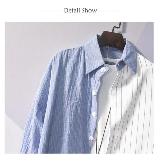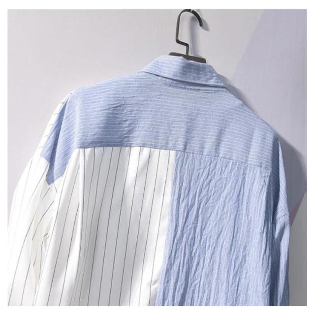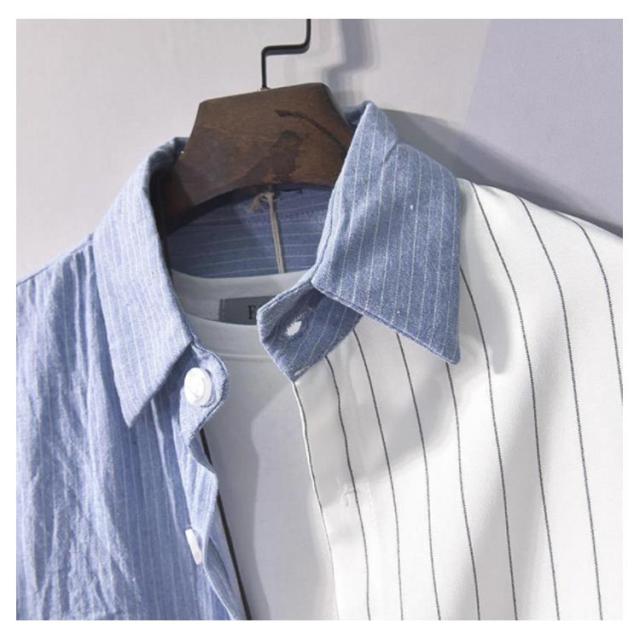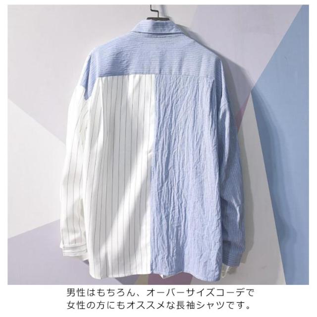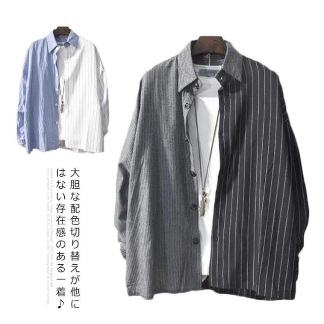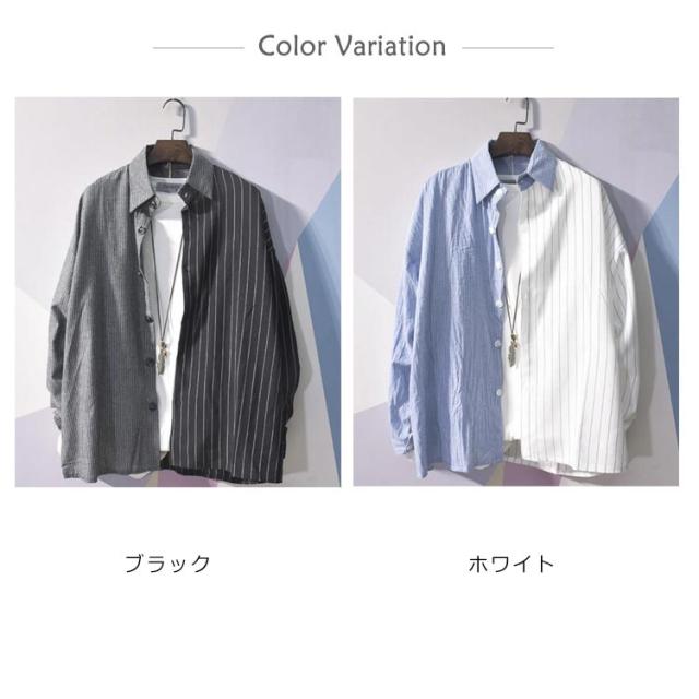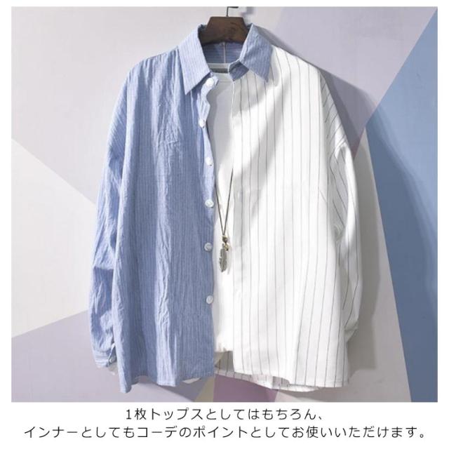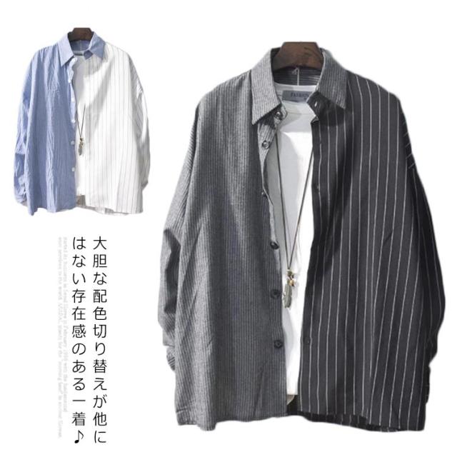 送料無料 カジュアルシャツ バイカラー 配色 切り替え ストライプ メンズ 長袖 ワイシャツ 長袖シャツ トップス 春新作 夏 秋 冬 アメカジ ストリート系