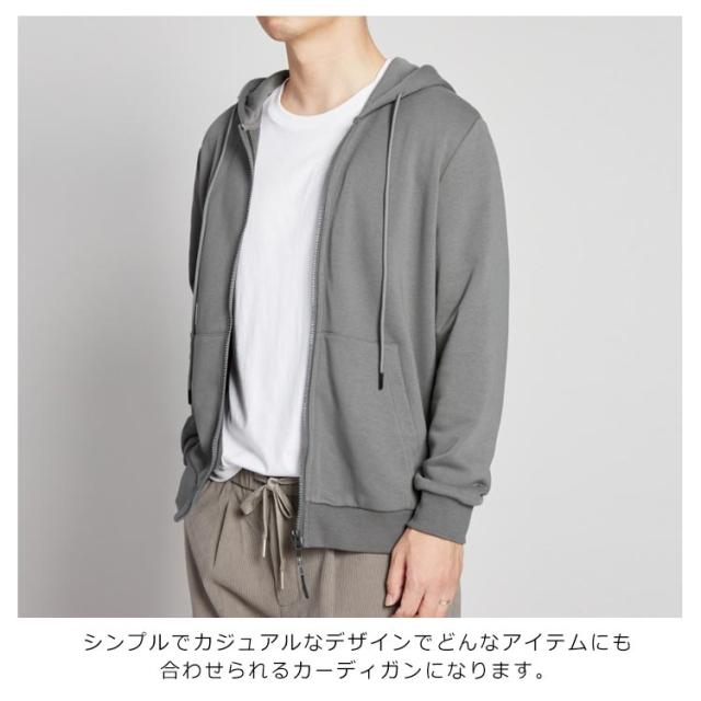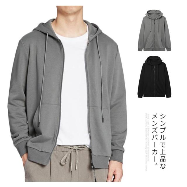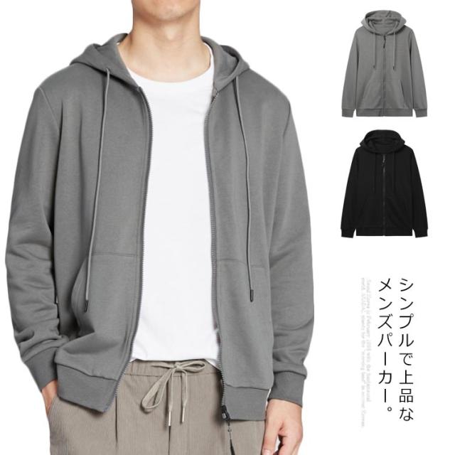 送料無料 パーカー メンズ トップス トレーナー カーディガン フード付き ジップアップパーカー カジュアル 無地 シンプル 春秋
