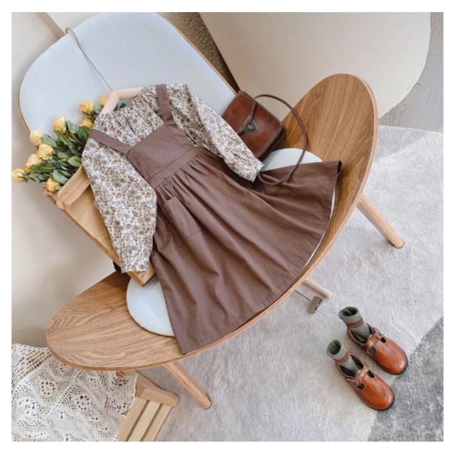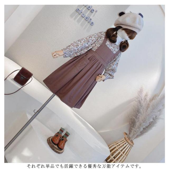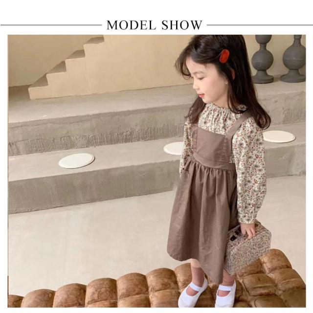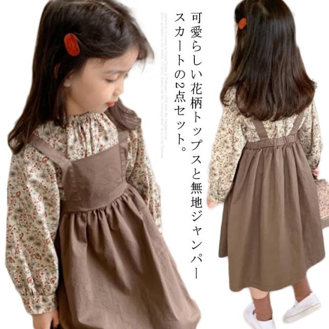 ワンピース 韓国子供服 女の子 セットアップ ジャンパースカート 長袖 ブラウス サロペット オールインワン サスペンダー オーバーオール ガールズ キッズ 春秋 冬 花柄 無地 カジュアル 普段着 おしゃれ 可愛い