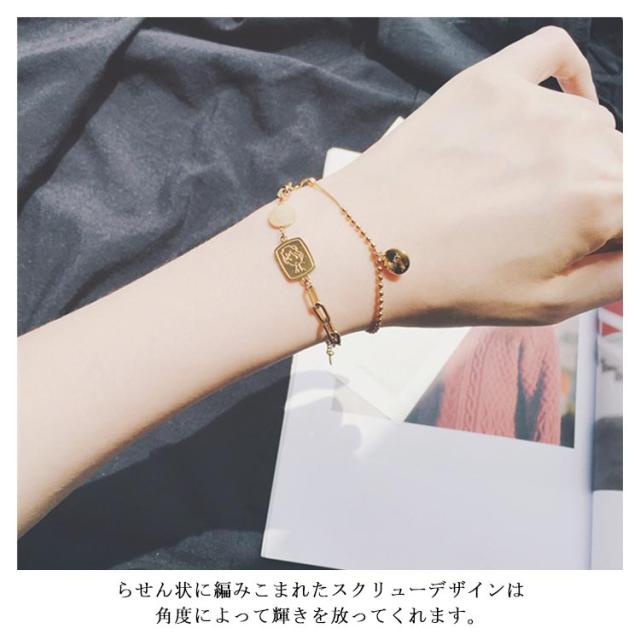 ブレスレット 腕輪 バングル レディース シンプル シック 18K スクリュー チェーン ジュエリー チタン アクセサリー 重ね付け 日常 エレガント 華奢 アンティーク おしゃれ