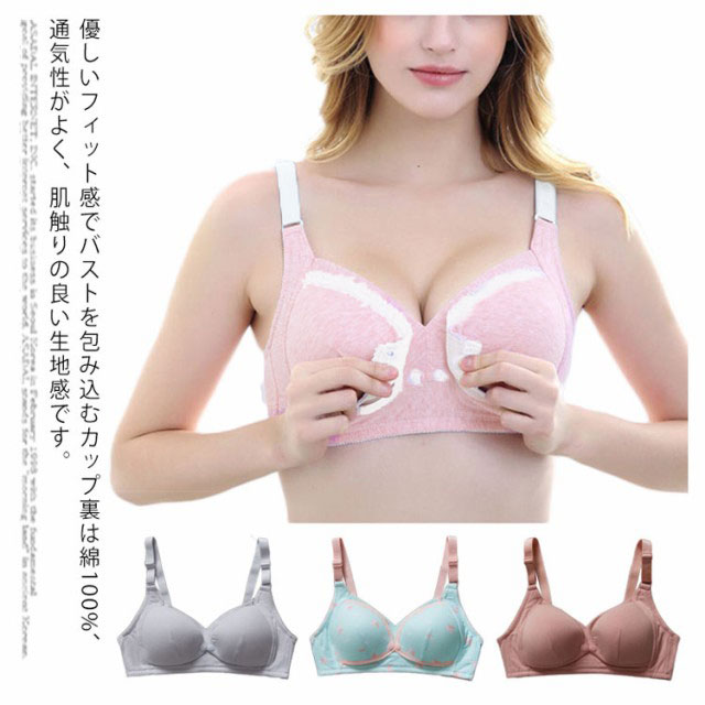 授乳ブラ 前開き 授乳用 授乳ブラジャー ノンワイヤー 綿 コットン ブラジャー 大きいサイズ 垂れ防止 脇高 マタニティブラ ナイトブラ インナー 産前 産後 下着 授乳期 妊娠 妊婦 育乳 谷間 3ホック 幅広ストラップ おしゃれ【送料無料】