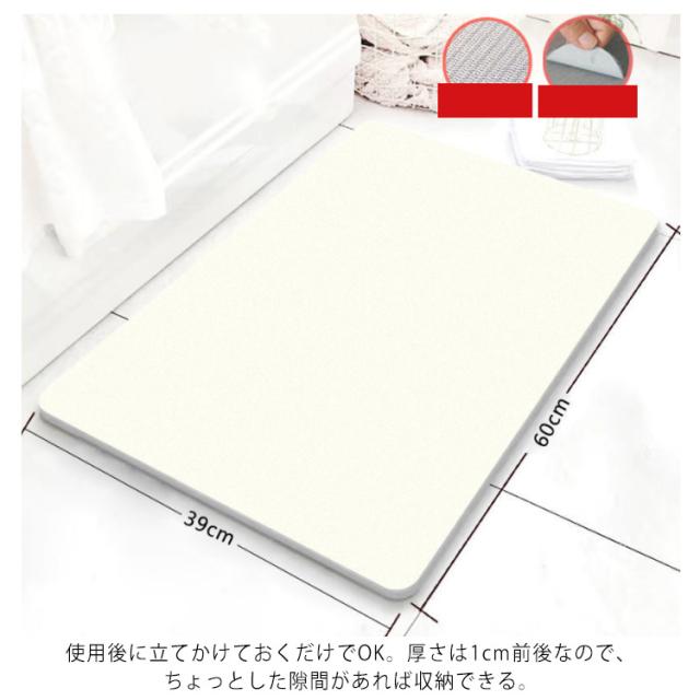 | は天然素材で、いやな臭い・有害物質一切なし。 もふもふ素材ではないので、汚れやごみなどは簡単に洗い流される。面倒な洗濯の手間を減り、バスマットの洗濯を楽にする。 バスマット自体が驚きの速乾性を備えているので、雑菌の繁殖を抑える。 滑り止めシート付きで、お子供とお年寄りでもご心配なく使える。さらに、大切な床も擦り傷などから守られる。 使用後に立てかけておくだけでOK。厚さは1cm前後なので、ちょっとした隙間があれば収納できる。 浴室だけではなく、キッチンや洗面所、玄関などいろんな場所で活躍できる。 | |