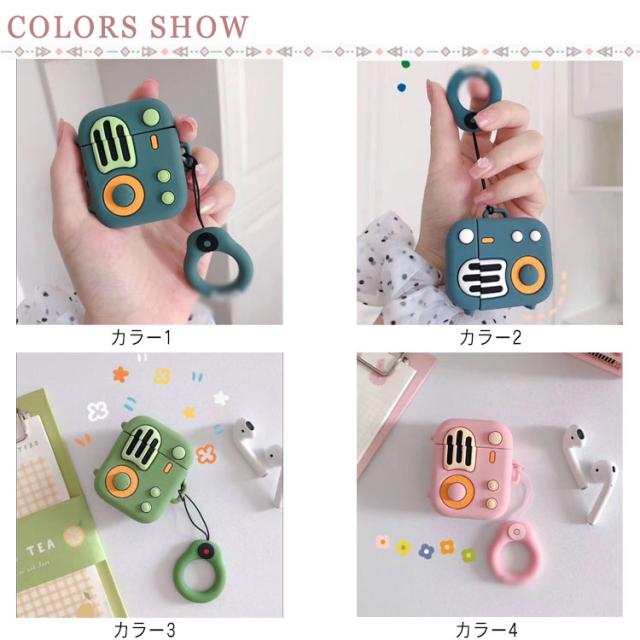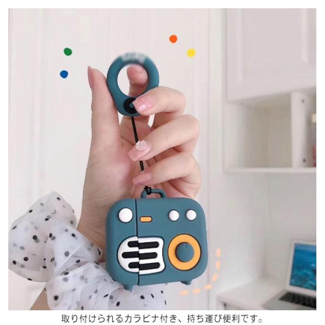 AirPods AirPodsPro ケース 第1/2/3世代 シリコン 可愛い デザイン性 傷防止 耐衝撃 防塵 保護ケース 個性的 ラジオ型 落下防止 カラビナ付き 柔らかい エアーポッズケース おしゃれ プレゼント 送料無料