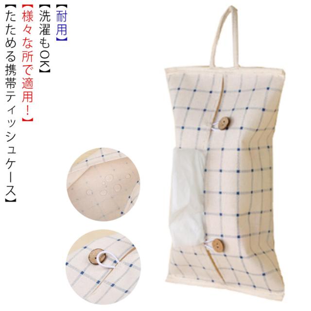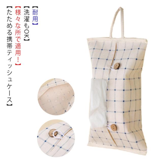 ティッシュケース チェック ボックスティッシュカバー 車 吊り下げ ドット トイレットペーパーホルダー カバー 可愛い かわいい 布 洗える 撥水 ギフト プレゼント