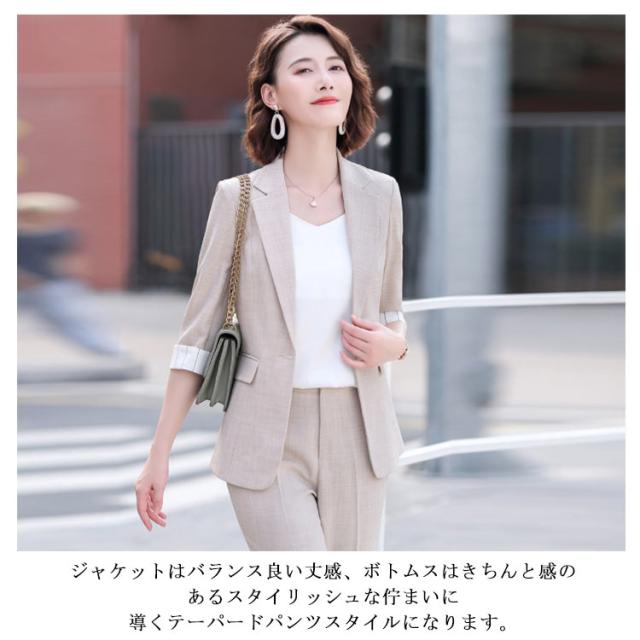 スーツ レディース パンツスーツ セットアップ 五分袖 礼服 セットアップ パンツスーツ 大きいサイズ ジャケット セレモニースーツ ブラックフォーマル レディーススーツ