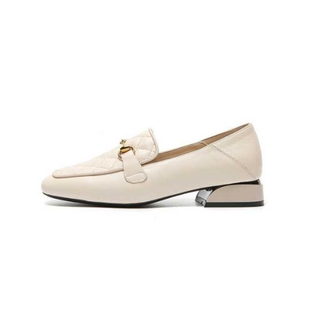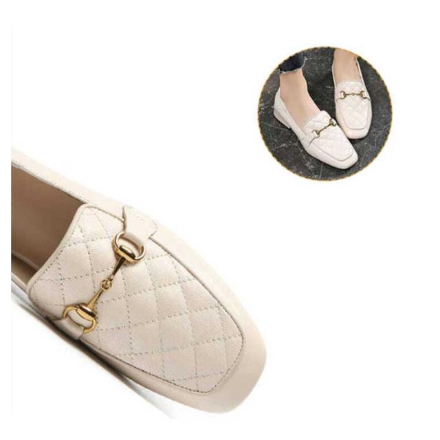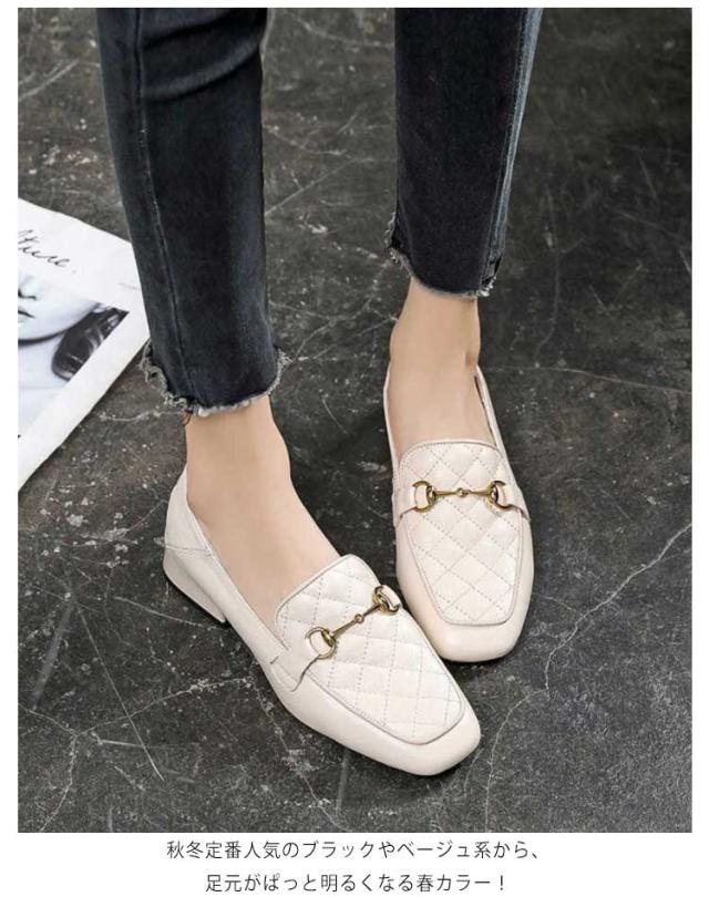 | 今季トレンドのスクエアトゥを取り入れた注目の一足です。 ビット部分にキルティングと合金で、女性らしい印象に仕上がります。 靴下を合わせればクラシカルで可愛らしいコーデに、 素足でさっと履けば、抜け感たっぷりの大人のカジュアルスタイルの完成。 秋冬定番人気のブラックやベージュ系から、足元がぱっと明るくなる春カラー! | |