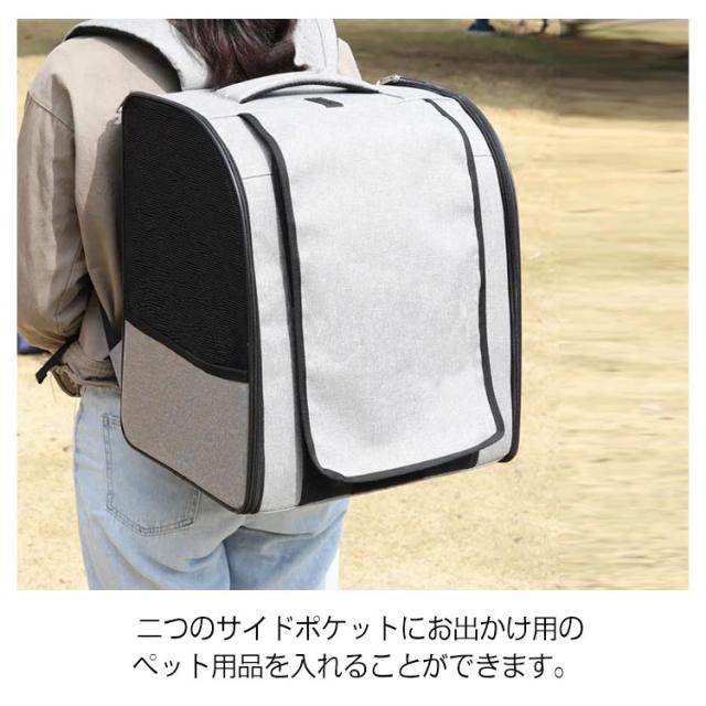 | ペットの通院、災害避難、電車移動、美容院通い、旅行など、色々な用途を想定して開発された猫、小型犬用のペットキャリーリュックです。 リュックタイプのペットキャリーバッグですので、両手がフリーになり非常に便利。 二つのサイドポケットにお出かけ用のペット用品を入れることができます。 リュック内に飛び出し防止リードがあるので、急に飛び出しても安心。 ぺットリュックは骨組み、底板もしっかりしており、付属の両面用マットも硬めに作られているので安定感あります。 メッシュ素材を採用して、通気性を上げ夏でも熱がこもらず蒸れません。 ファスナーを開け閉めするだけで楽々組み立て・折りたためます。 使わない時はたたんで収納できるのでスペースをとりません。 | |