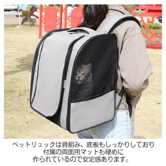 小型犬キャリーバッグ 猫キャリーリュック キャリーバッグ ペットキャリー バッグ 犬 猫 リュック 折りたたみ 型崩れにくい 大容量 ショルダー 窓 耐荷重9kg 変形しない 通気性抜群 引っ掻き傷に強い ドライブ お出かけ 旅行 通院 災害避難用 マット付