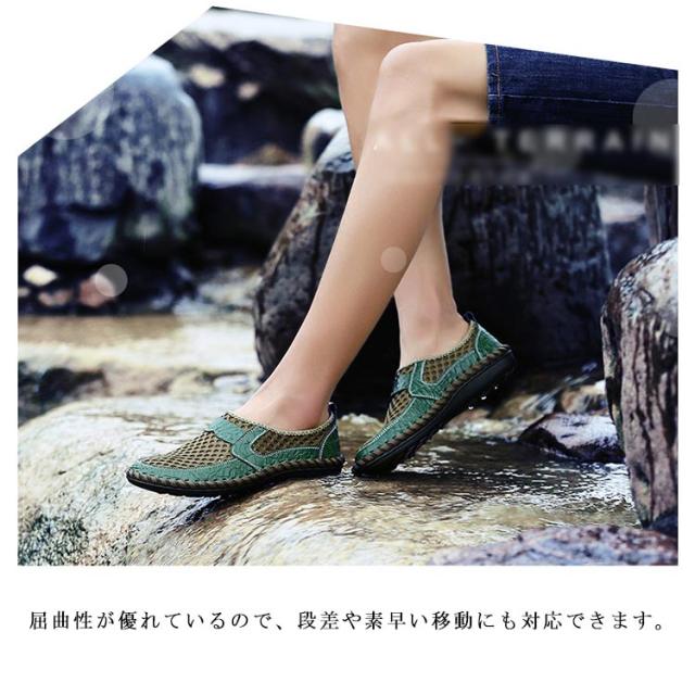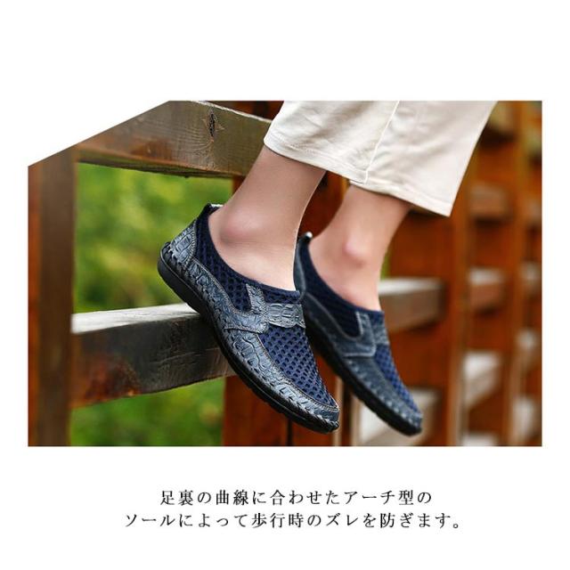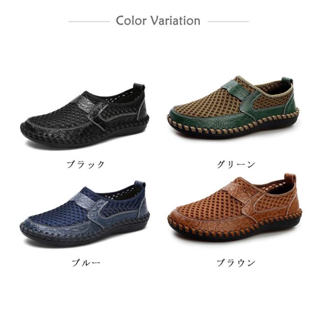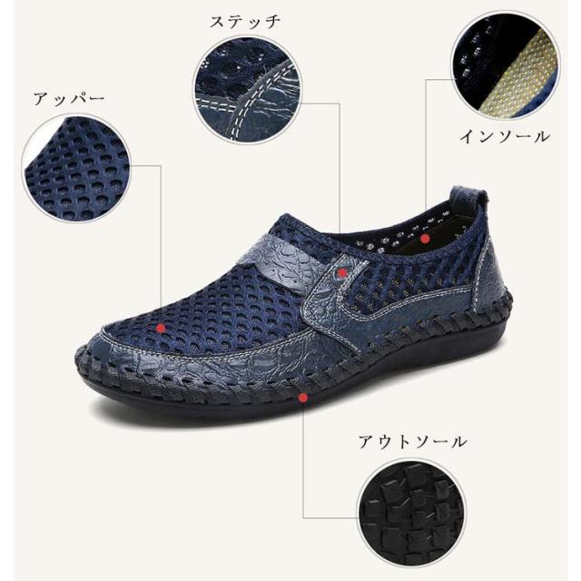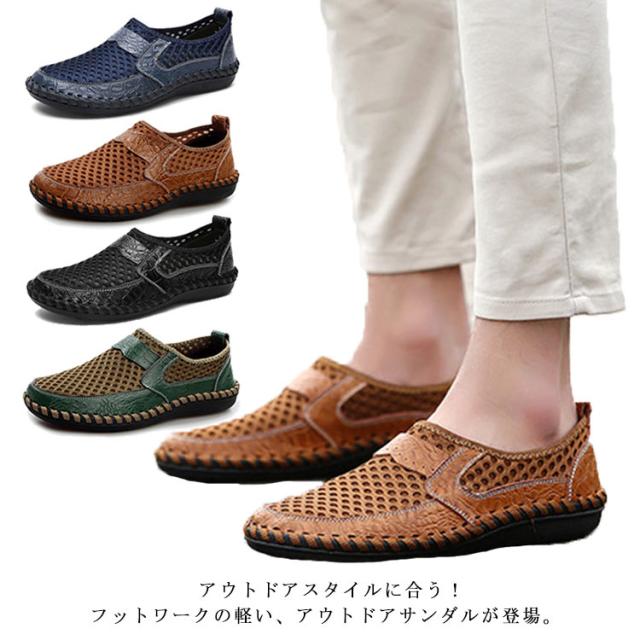 メッシュ スリッポン アウトドア ローファー シューズ メンズ スニーカー カジュアルシューズ スポーツサンダル メッシュ 通気 レザー 厚底 大きいサイズ