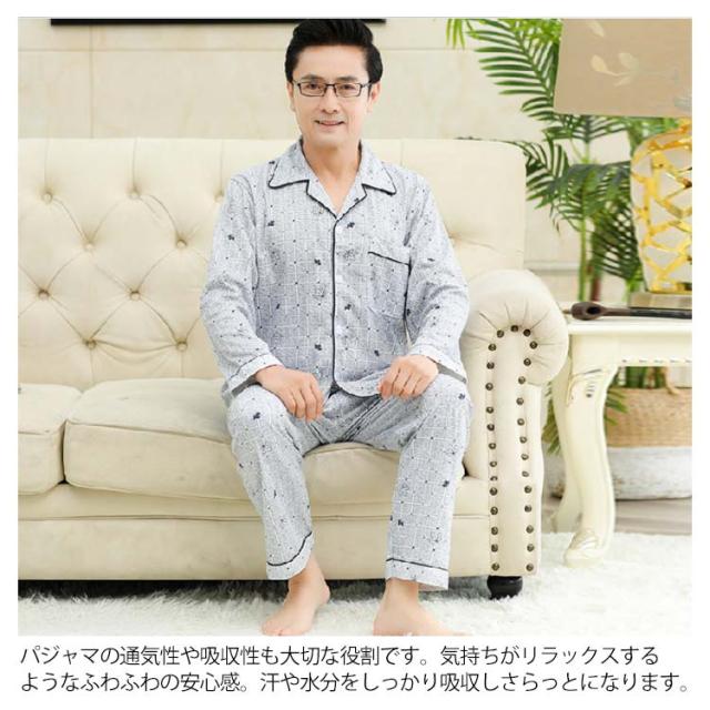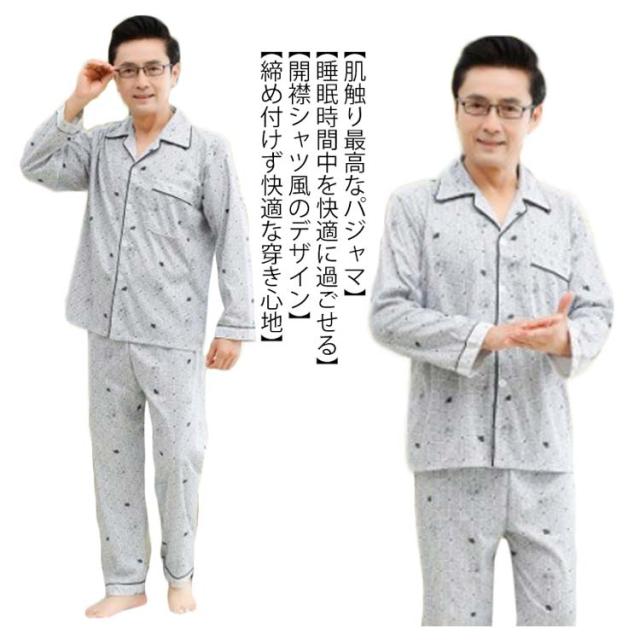メンズ パジャマ 長袖 前開き 部屋着 寝巻き 春 秋 冬 ナイトウェア 男性セットアップ 大きいサイズ 旦那 記念日 お祝い ギフト プレゼント 父の日 敬老の日