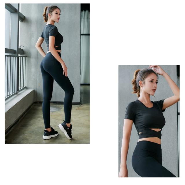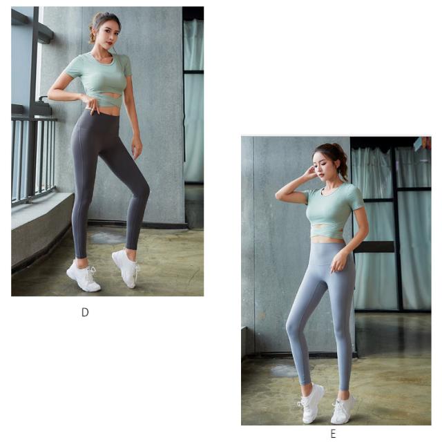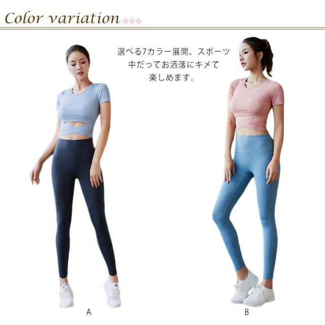 | Tシャツとレギンスパンツのスポーツウェア上下セット。 程よくショート丈トップスでウエストラインを美しく見せてくれます。 汗をかいても快適な吸汗速乾素材でストレッチが効いて動きやすい。 選べる7カラー展開、スポーツ中だってお洒落にキメて楽しめます。 ヨガ、ピラティス、ダンスなどさまざまなシーンで着られる万能フィットネスウェア! | |