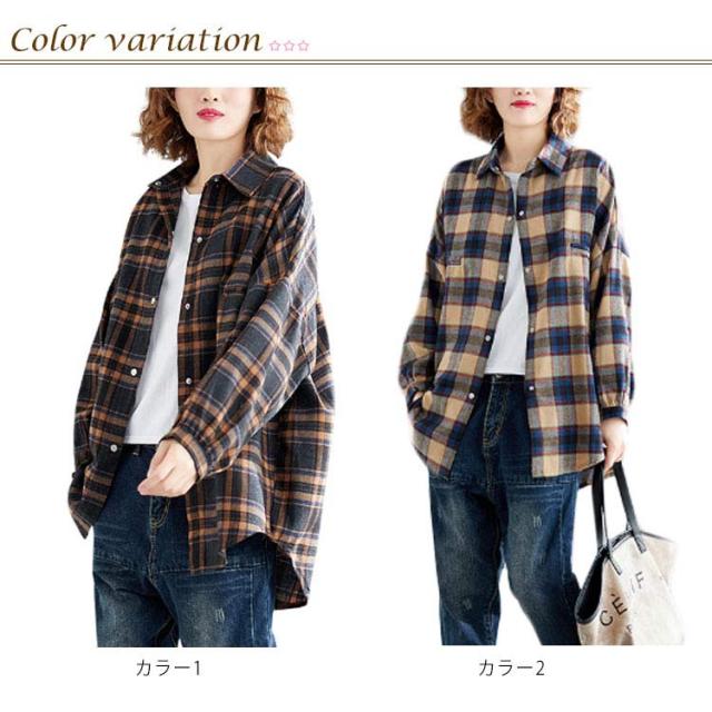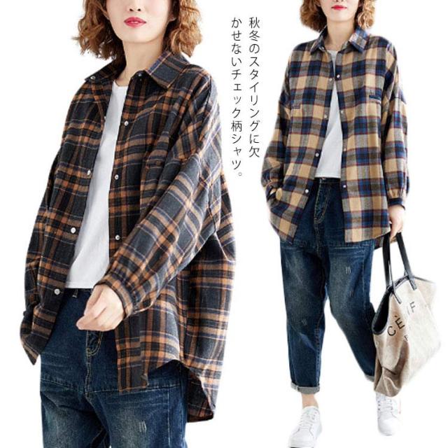 (送料無料)チェックシャツ レディース 長袖 シャツ チュニック チェック柄 ネルシャツ トップス 羽織り ロングシャツ ボタン 大きいサイズ ゆったり おしゃれ カジュアル 大人 可愛い シンプル 重ね着 きれいめ 大人 シンプル かわいい