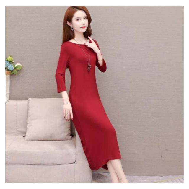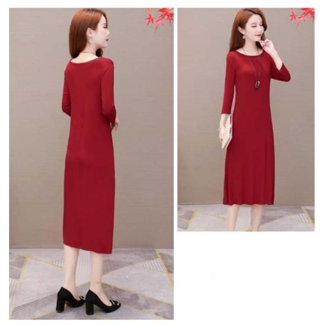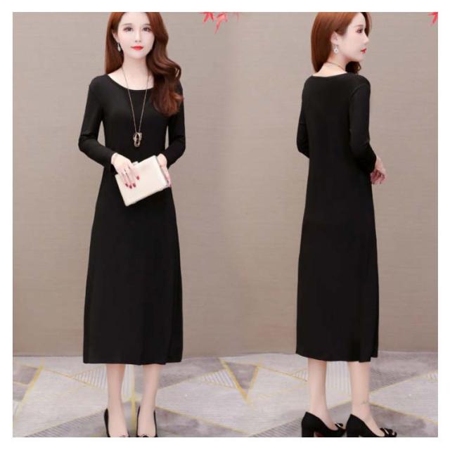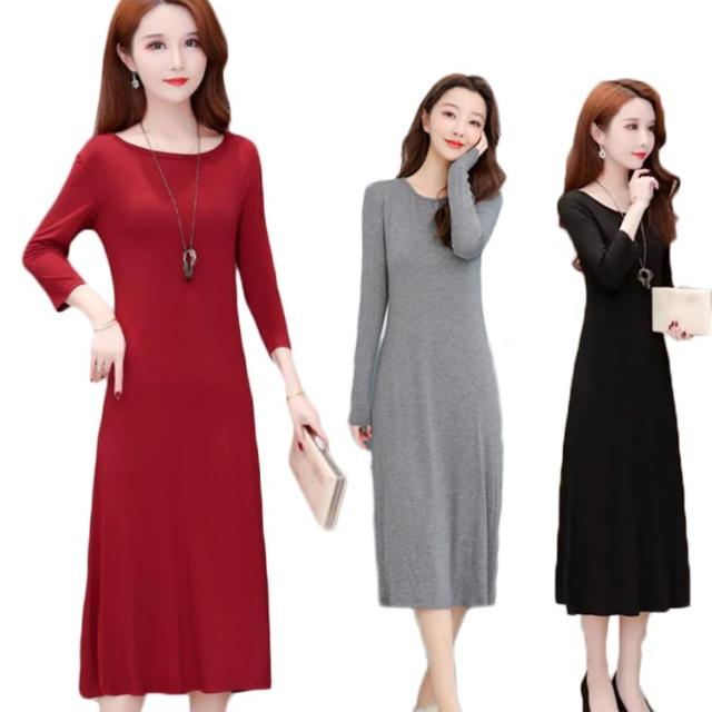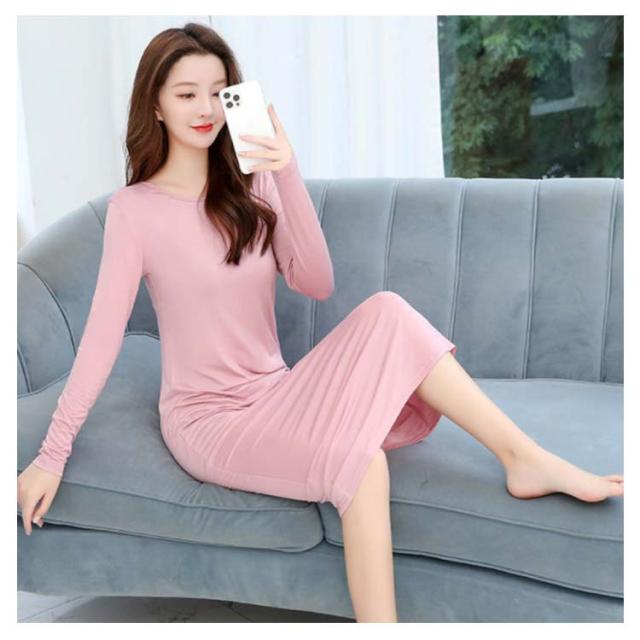 インナーワンピース レディース コットン 春秋 長袖 大きサイズ ロングワンピース ルームウエア インナーウエア 丸襟 ミモレ丈 無地 送料無料 シンプル カジュアル おしゃれ ロングワンピ フェミニン
