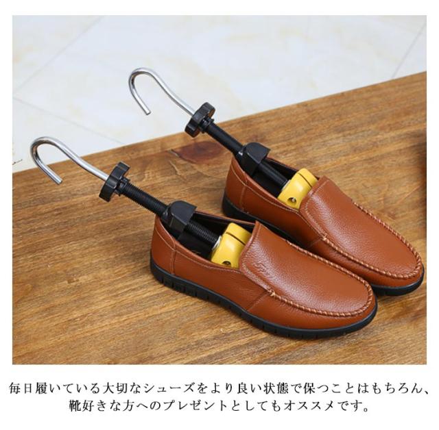 | パンプスやスニーカー、ハイヒール、革靴などにピッタリ万能シューキーパー。 使用簡単!靴の中にセットしてハンドルやねじを回すダケでお手持ちの靴がぴったりサイズに!! 毎日履いている大切なシューズをより良い状態で保つことはもちろん、靴好きな方へのプレゼントとしてもオススメです。 | |