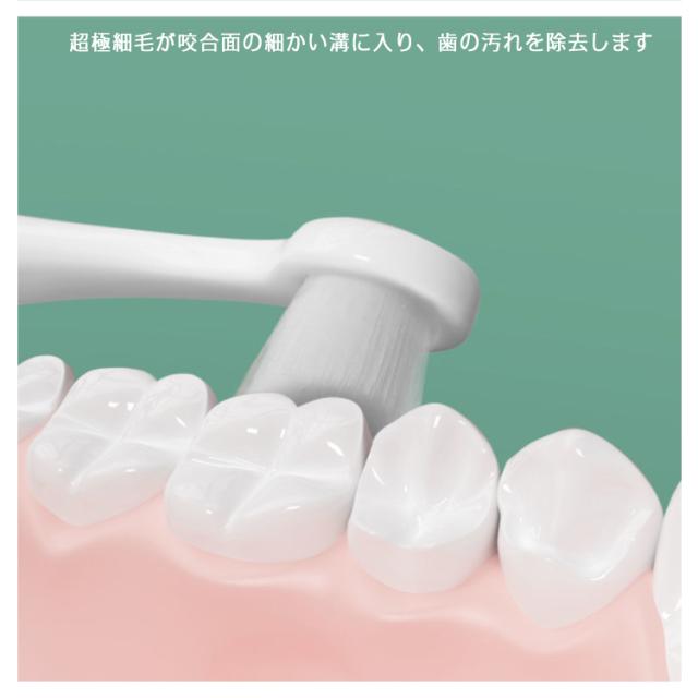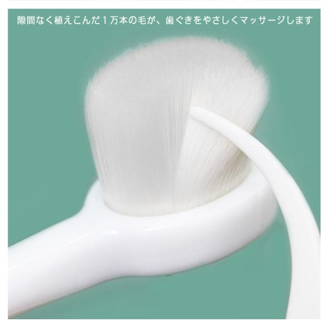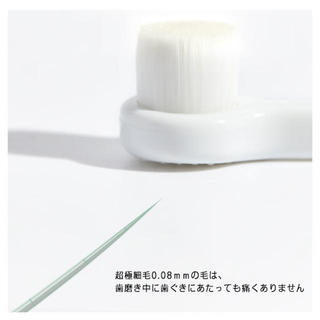 | 太さ0.08mmの超極細毛を1万本植毛した歯ブラシです。 歯ブラシ嫌いや、ブラッシングを痛がるお子様でも、痛くなく歯磨きができます。 毛が細くてやわらかいので、萌出が始まった直後からお使いいただけます。 柔らかく刺激が少ない毛を使用しているので、触覚過敏、感覚過敏のお子様にもお薦めいたします。 | |