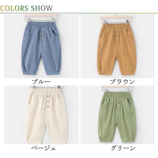 綿 麻 パンツ ベビー 七分丈パンツ キッズ 男の子 カジュアルパンツ 子供服 綿麻風 ゆったり ロングパンツ ボーイズ 薄手 ウエストゴム 無地 コットン リネン 夏 送料無料 90 100 110 120 130 140