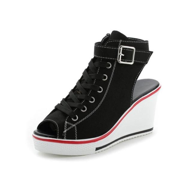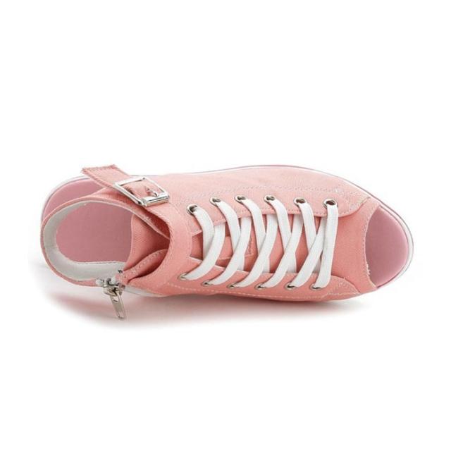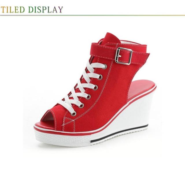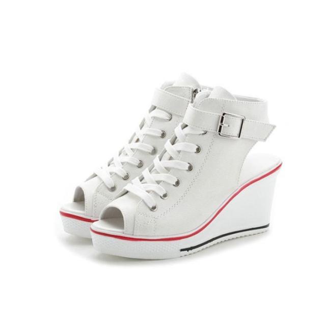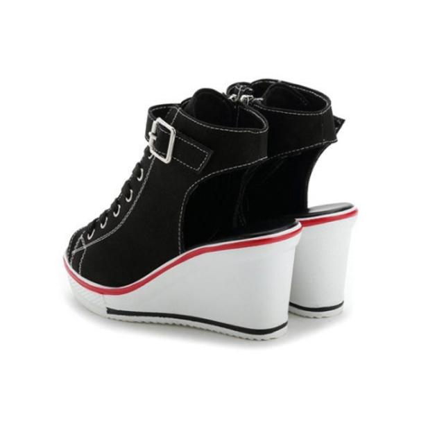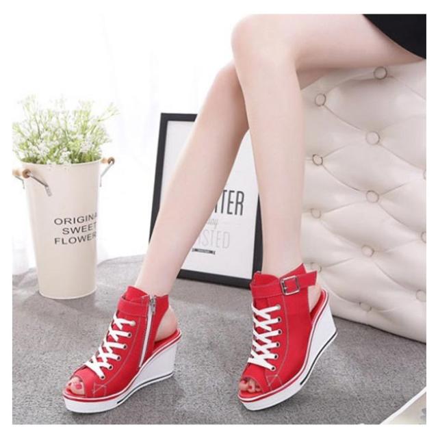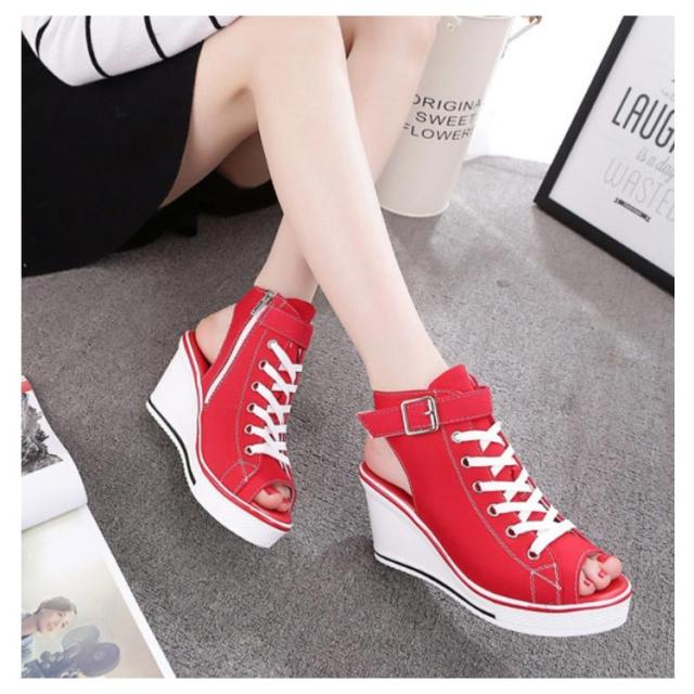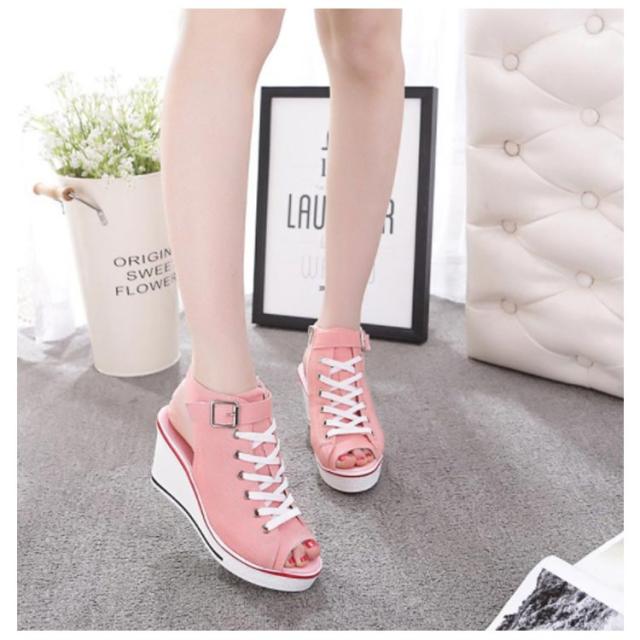 スニーカーサンダル レーディス 厚底サンダル ハイヒール キャンバス シューズ サンダル スニーカー レースアップシューズ ヒール8cm ウェッジソール カジュアル レースアップ シューズ 美脚