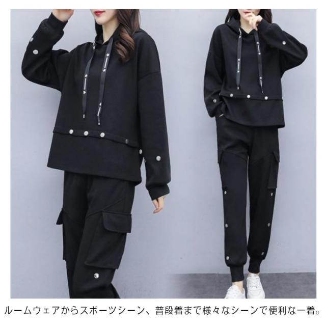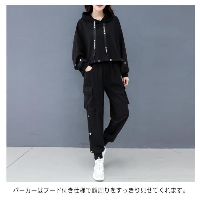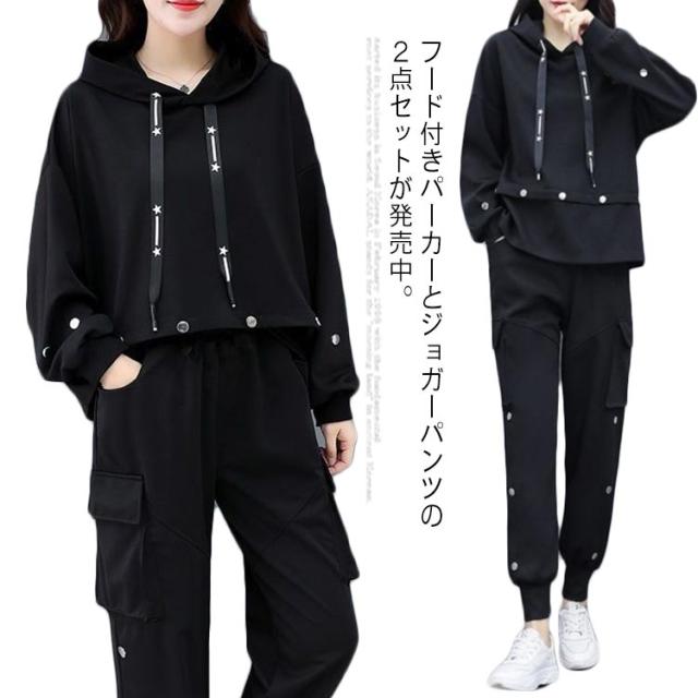 ジャージ セットアップ スウェット 上下セット レディース セットアップ フード付きパーカー 長袖 ジョガーパンツ テーパードパンツ スウェットパンツ ウェストゴム スポーツウェア 運動着 部屋着 ルームウェア おしゃれ トレーナー ゆったり 体型カバー