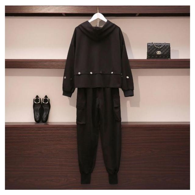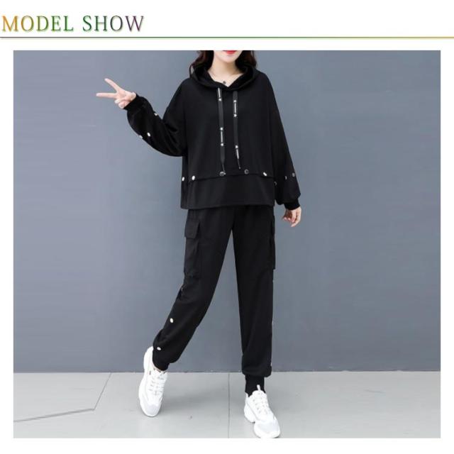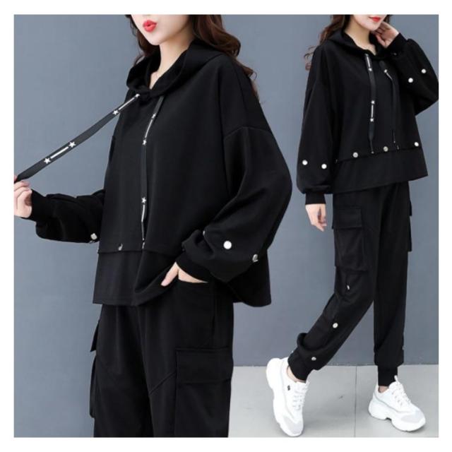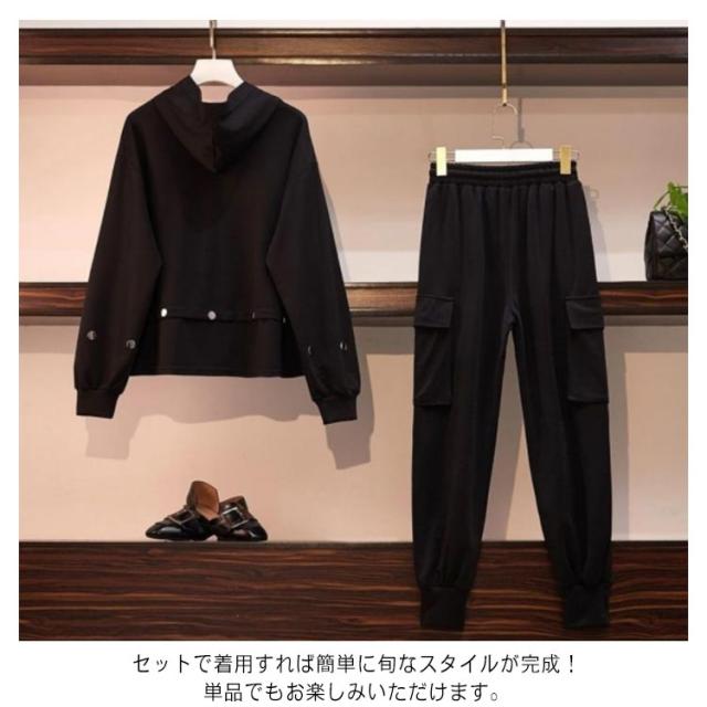 | フード付きパーカーとジョガーパンツの2点セットが発売中。 パーカーはフード付き仕様で顔周りをすっきり見せてくれます。 ボトムスはウェストゴム仕様で、締め付け感がなく着心地抜群。 ルームウェアからスポーツシーン、普段着まで様々なシーンで便利な一着。 セットで着用すれば簡単に旬なスタイルが完成!単品でもお楽しみいただけます。 | |