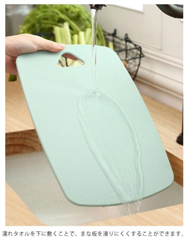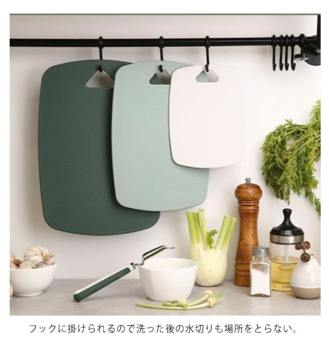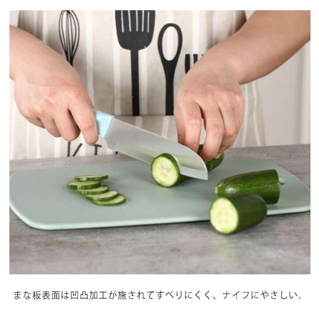 | 調理方法によって肉・魚・野菜で使い分けるので、衛生的にもとても安心。 まな板表面は凹凸加工が施されてすべりにくく、ナイフにやさしい。 濡れタオルを下に敷くことで、まな板を滑りにくくすることができます。 ミニタイプなのでテーブルでパンや果物、ケーキなどを切ったり、アウトドアに持っていくのにも便利。 ナイフにやさしく表面に傷が付きにくく、食材の色あるいは人参の色と汚れが染み込みにくいので、いつも清潔的。 フックに掛けられるので洗った後の水切りも場所をとらない。 | |