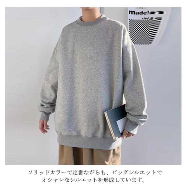 | さりげなくかっこいい無地なデザインのシンプルなトレーナー。 ゆったりとしたサイズ感と柔らかい素材感、着疲れしないリラックスできる着心地。 ソリッドカラーで定番ながらも、ビッグシルエットでオシャレなシルエットを形成しています。 カジュアルだけどシンプルで合わせやすいから、着回しもしやくてGOOD。 家でも外出着としてもお洒落なこなれ感。リラックスした雰囲気でおなれたお洒落を演出 | |
