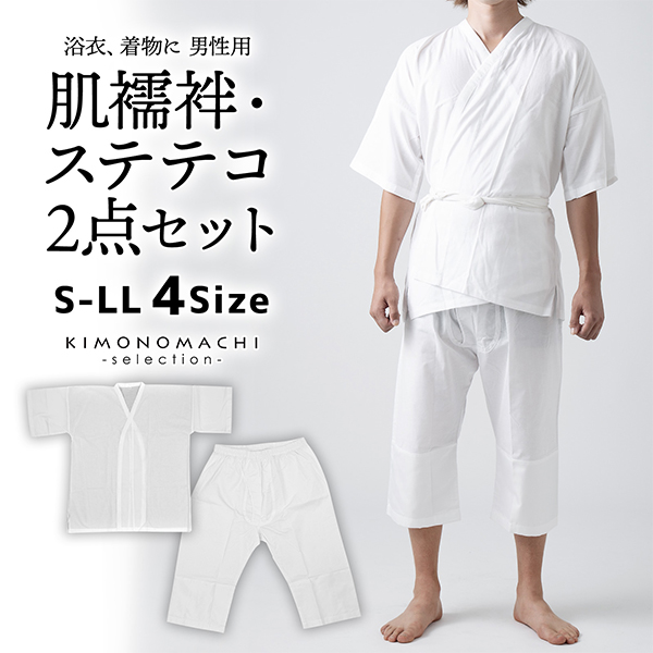 「男性用 肌襦袢・ステテコ2点セット」肌着 パッチ 下ばき 下履き 男物 紳士用 下着 インナー 通年用 大人 メンズ 男性 洗える 和装 礼装 着物 浴衣【メール便不可】