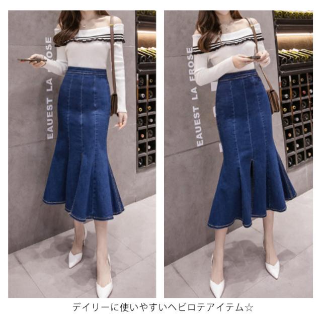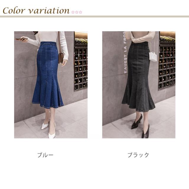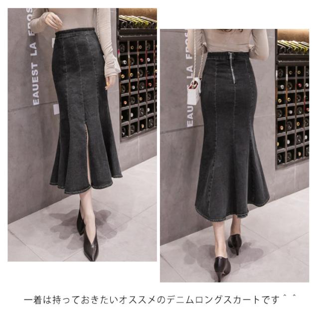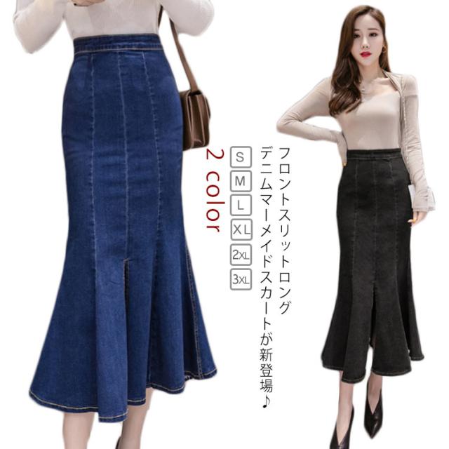 フレアスカート マーメイド スカート プリーツ ロングデニムスカート ロング丈 デニムスカート ロングスカート プロントスリット ミモレ丈 エレガント Aラインスカートデニム ミディスカート プリーツスカート フレアスカート ロングスカート