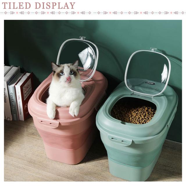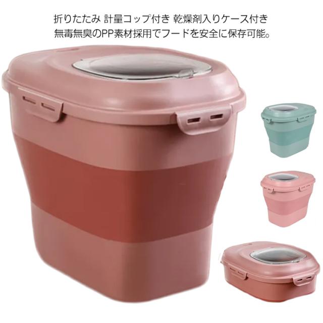 折りたたみ可能 ペットフード フードストッカー 犬 猫 密閉 ペット 大容量 17kg おしゃれ ペットフード ドッグフード キャットフード ドライフード 米ストッカー コップ付き
