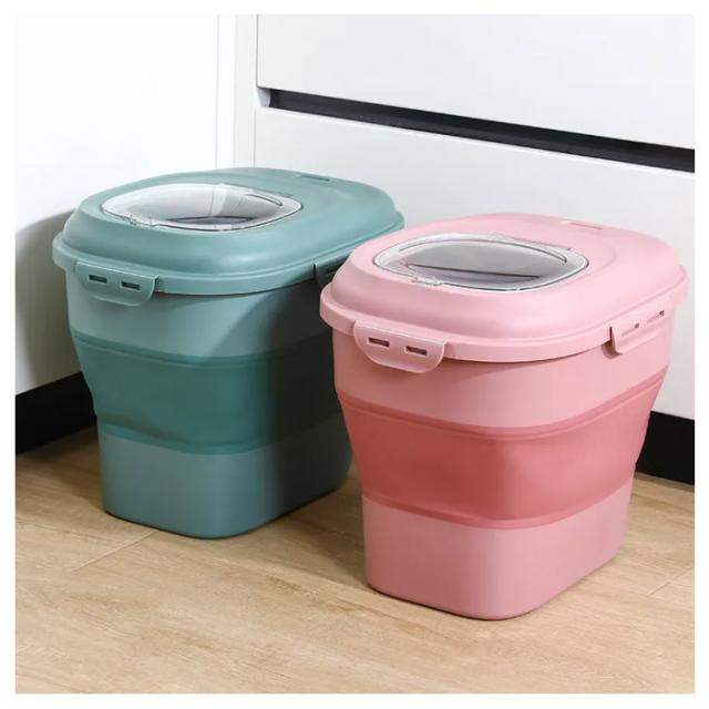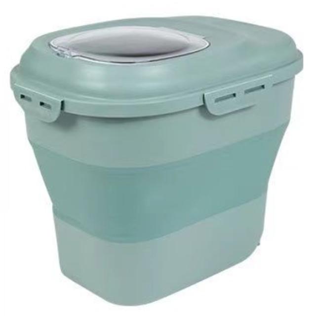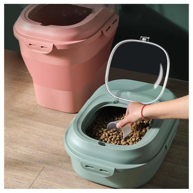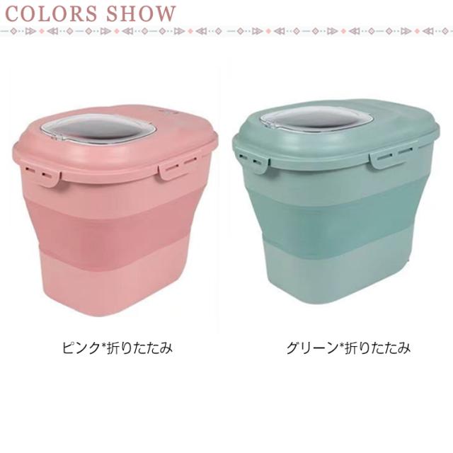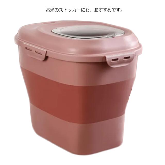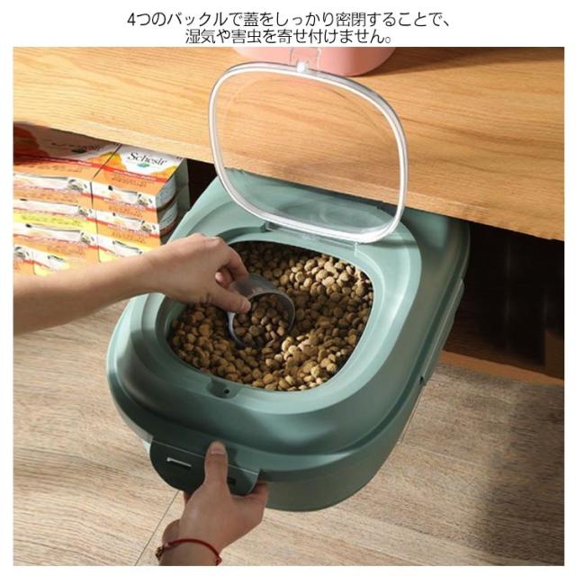 | 無毒無臭のPP素材採用でフードを安全に保存可能。 4つのバックルで蓋をしっかり密閉することで、湿気や害虫を寄せ付けません。 折りたたみできるなので、スペースを! 透明なカバーからフードやおやつの残量を確認できるので、補充を行うタイミングがわかりやすいです。 乾燥剤(別売り)を入れることが用意しています、防湿効果がさらに高まります。 お米のストッカーにも、おすすめです。 | |