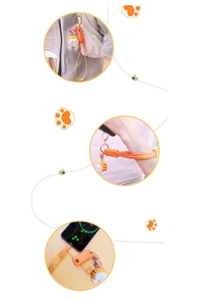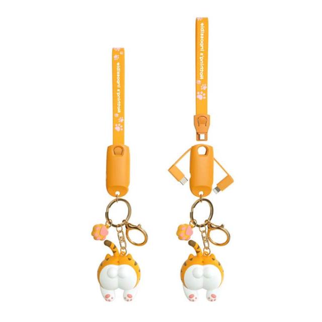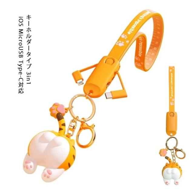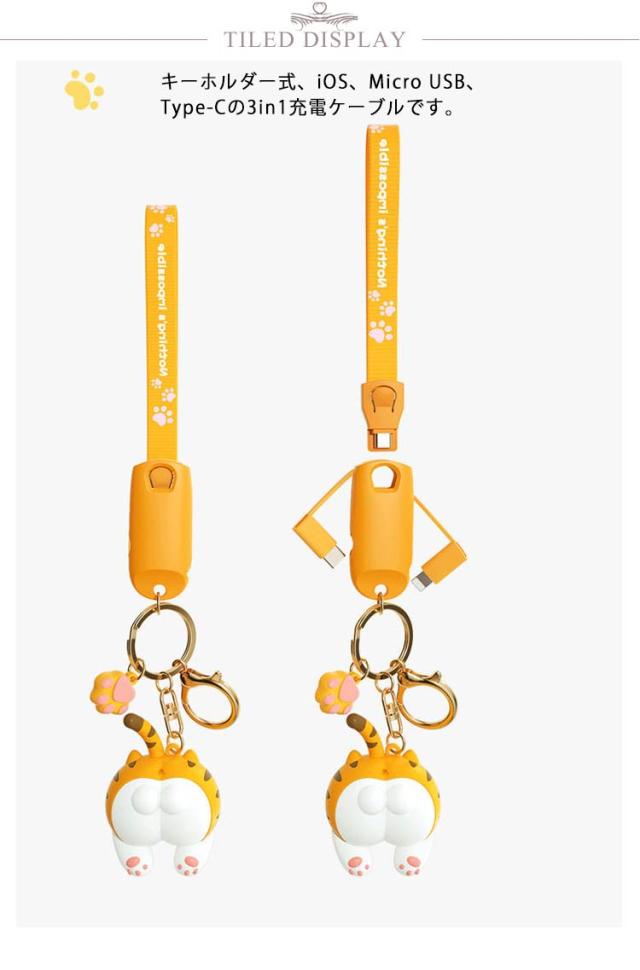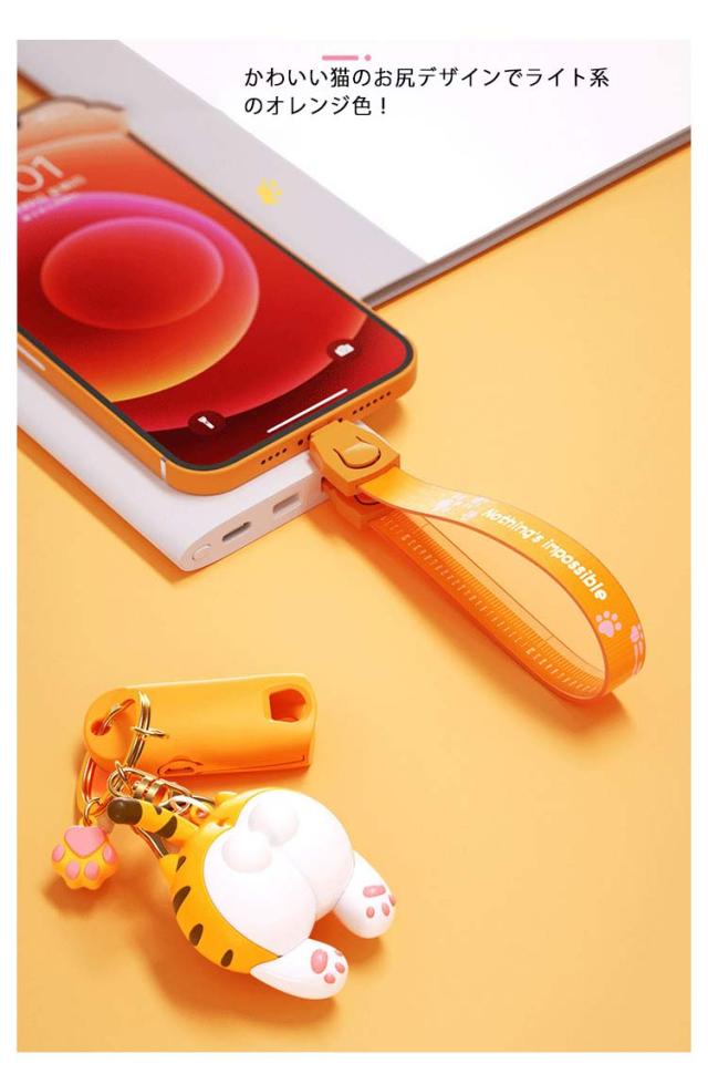 | キーホルダー式、iOS、Micro USB、Type-Cの3in1充電ケーブルです。 かわいい猫のお尻デザインでライト系のオレンジ色! 裏面に22cmの巻き尺付き、便利さUP! スマホストライプとしてはもちろん、IDカード、仕事場にもおすすめです。 | |