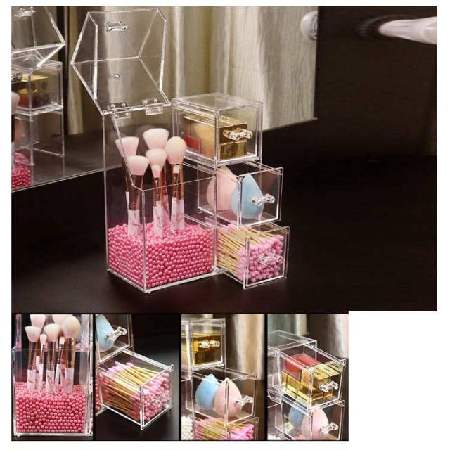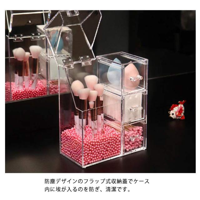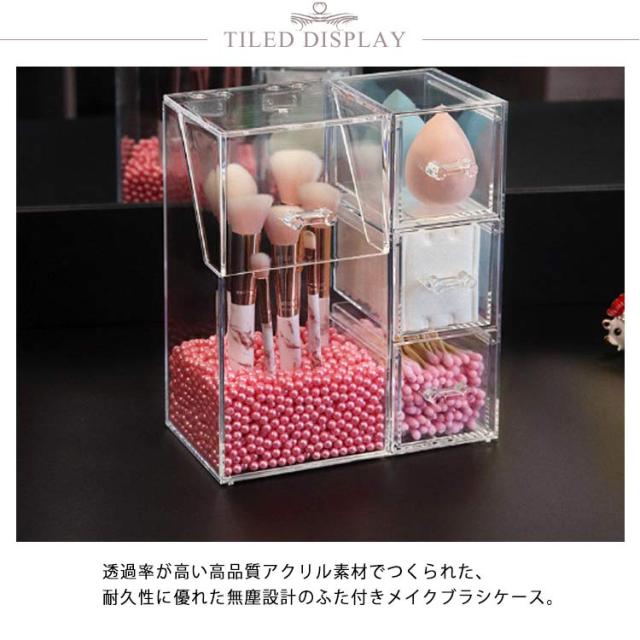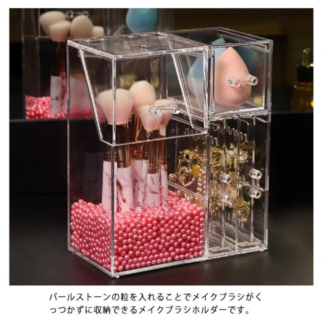 メイクボックス コスメボックス メイクケース メイクブラシ収納 クリアケース メイク 化粧ブラシ スタンド 収納ケース 透明 コスメ 収納 BOX ビーズ