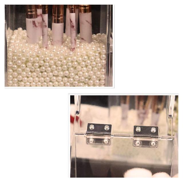 | 透過率が高い高品質アクリル素材でつくられた、耐久性に優れた無塵設計のふた付きメイクブラシケース。 パールストーンの粒を入れることでメイクブラシがくっつかずに収納できるメイクブラシホルダーです。 防塵デザインのフラップ式収納蓋でケース内に埃が入るのを防ぎ、清潔です。 クリアケースで中身が見えて、忙しいあなたのメイク時間を短縮します。 挿すだけでブラシがたてられるメイクボックス、整理整頓が簡単です。 | |