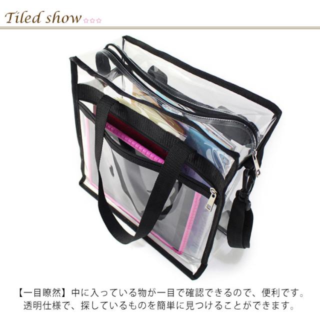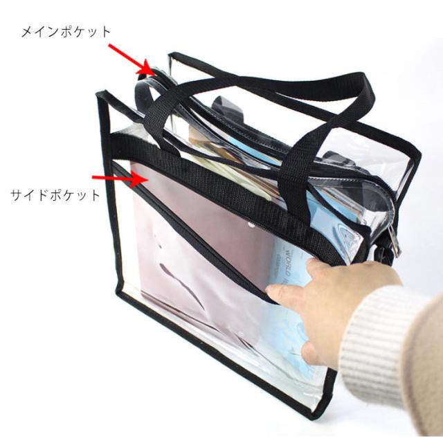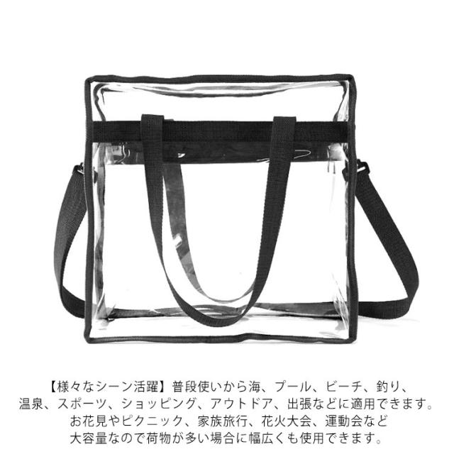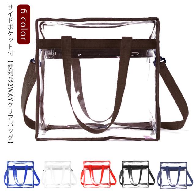 クリアバッグ ショルダーバッグ 透明 バッグ クリア トートバッグ 2WAY バッグ サイドポケット付ストラップ付 クリアトートバッグ 海 プール ビーチ 釣り 温泉 スポーツ ショッピング アウトドア