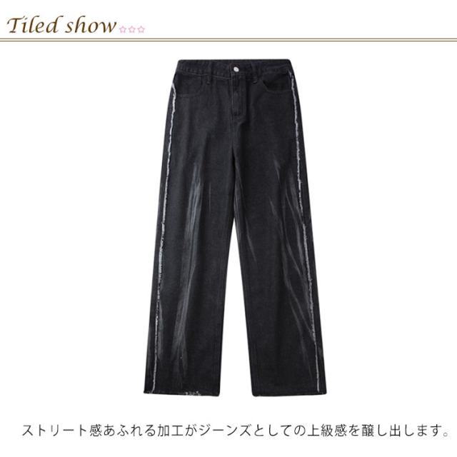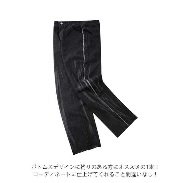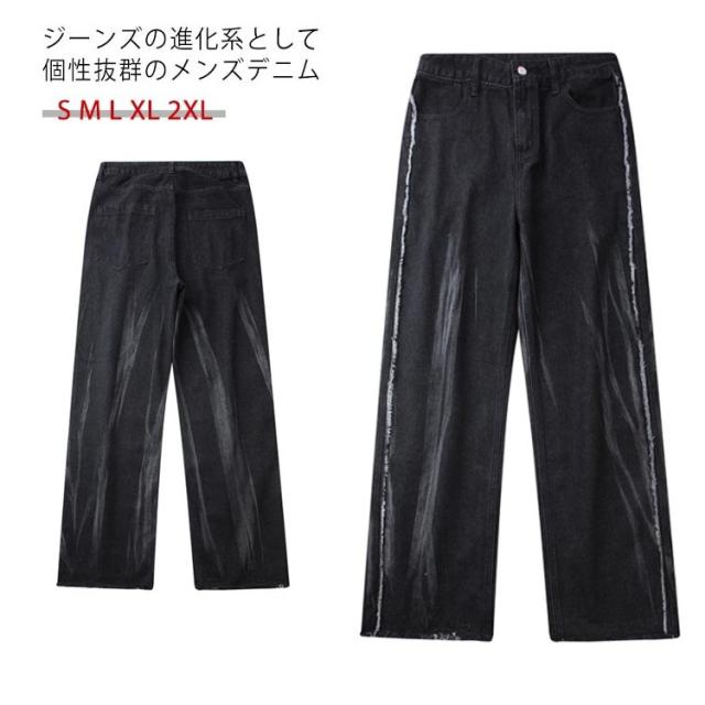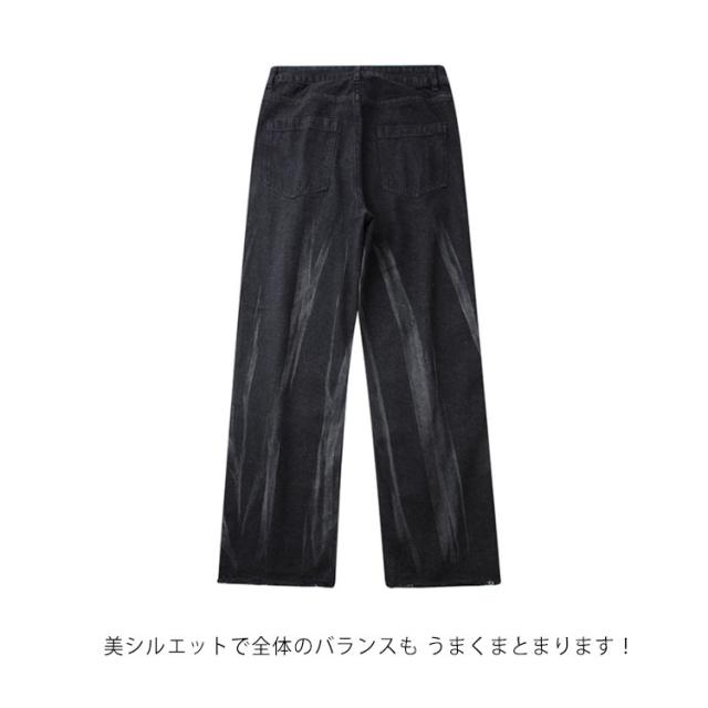 ワイドパンツ デニム メンズ バギーパンツ デニム パンツ ロング丈 ストレートパンツ ウォッシュ加工 ゆったり ルーズシルエット ダメージライン パンツ オーバーサイズ ジーンズ gパン メンズ ボトムス デニム カジュアル アメカジ ポップ