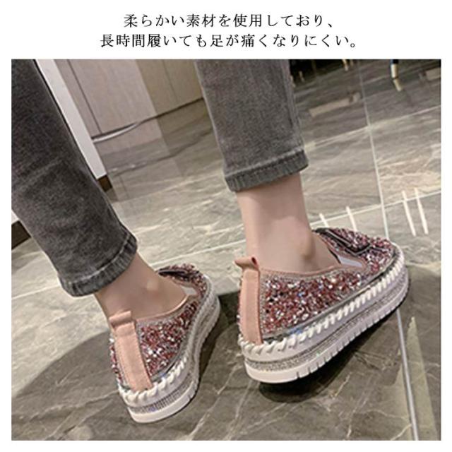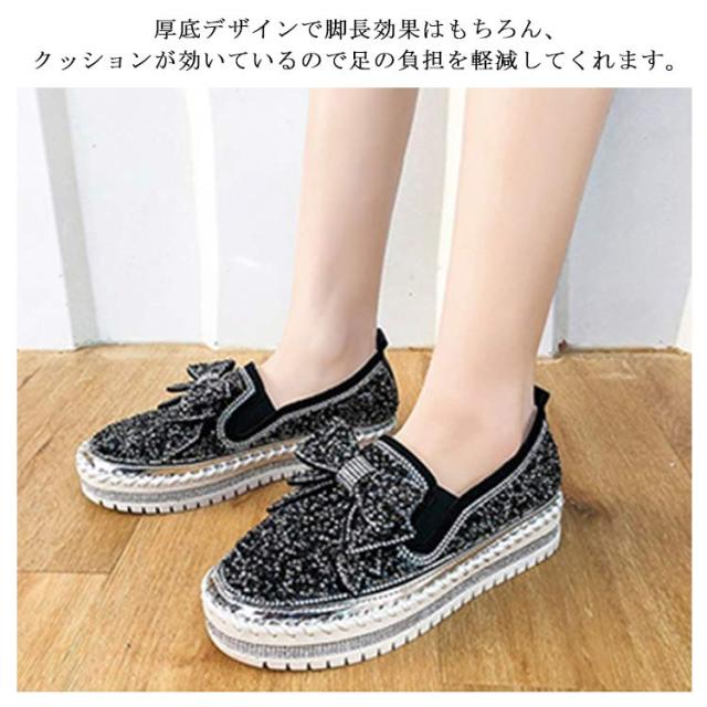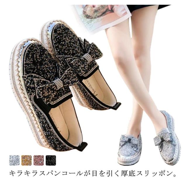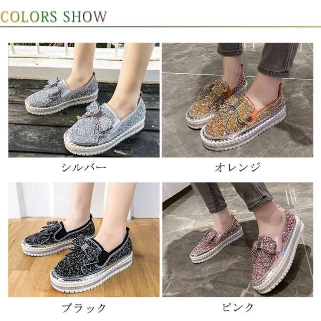 スリッポン レディース スニーカー 厚底 インヒール キラキラ スパンコール リボン シューズ 厚底 スリッポン サイドゴア 履きやすい 歩きやすい 美脚 スタイルアップ ローカット おしゃれ グリッター リボンシューズ カジュアル 通勤 お出かけ