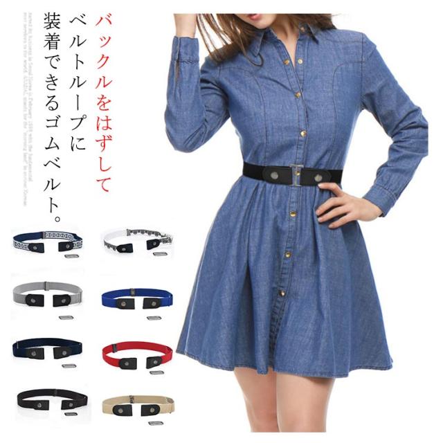 ベルト レディース メンズ ノーバックルベルト 2way ゴムベルト 送料無料 男女兼用 バックル無し ベルト バックル付属 ストレッチ 伸縮性 フリーサイズ 苦しくない 細魅せ