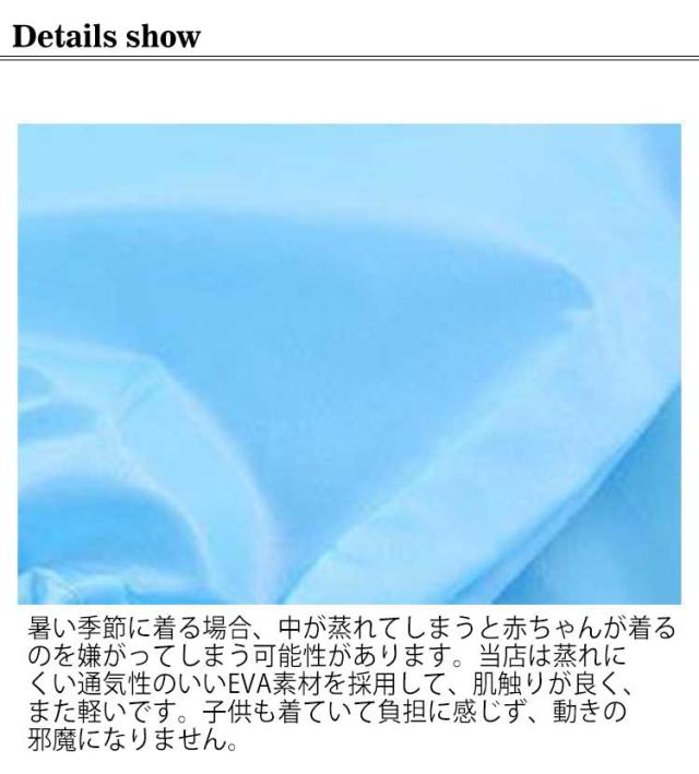 | (高品質EVA素材と高性能)環境にやさしい素材で作られたEVAは、優れた環境耐久性、優れた防水性能、優れた通気性、柔らかく軽い感触、厚みがあり、耐摩耗性、無臭などの利点があります。 (軽量)暑い季節に着る場合、中が蒸れてしまうと赤ちゃんが着るのを嫌がってしまう可能性があります。当店は蒸れにくい通気性のいいEVA素材を採用して、肌触りが良く、また軽いです。子供も着ていて負担に感じず、動きの邪魔になりません。 (防水通気性)ポンチョの表面は防水仕様で、縫い目も防水仕様で雨水の浸入を防ぎます。 防風?防雪。 また、通気性に優れ、濡れたり熱くなったりせず、速乾性に優れています。 (お子様向け)お子様用レインコート、通勤、通学、バイク、スノーショベルなどに最適です。アウトドアアクティビティに最適です。 梅雨対策に最適です。 コンパクトに折りたためてフタに入れて持ち運びに便利な収納袋が付いています。 | |
