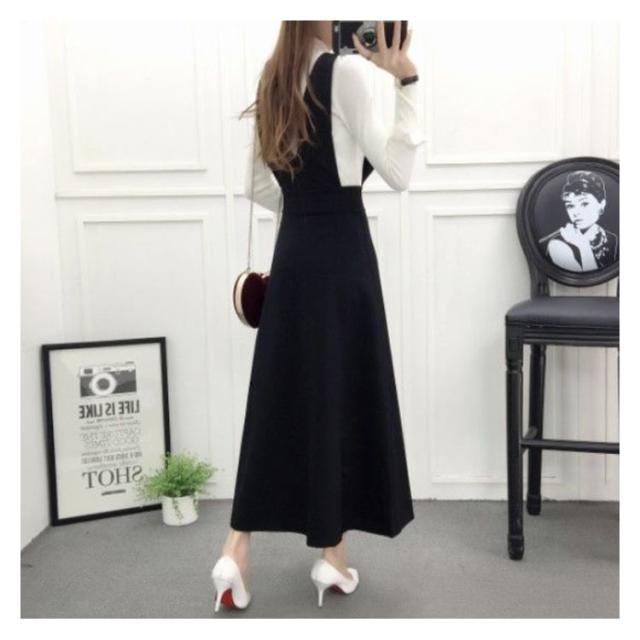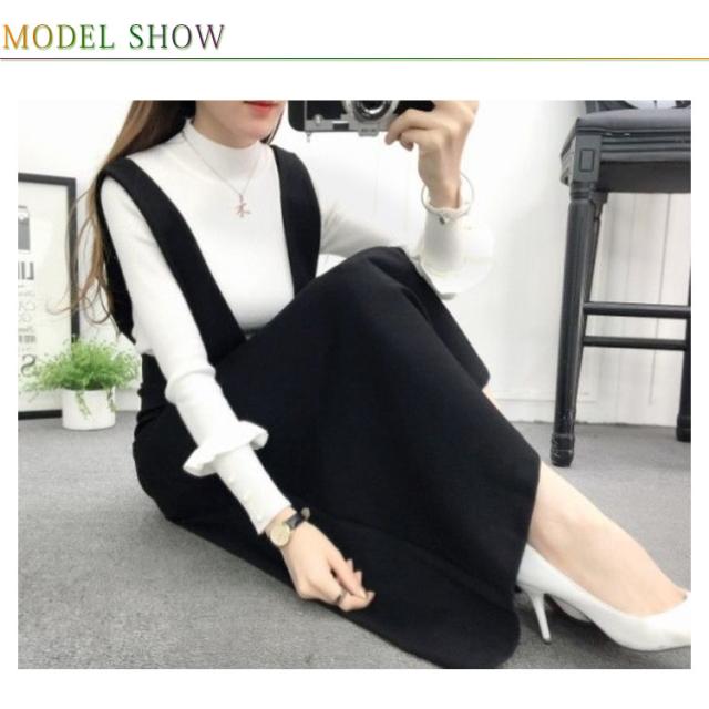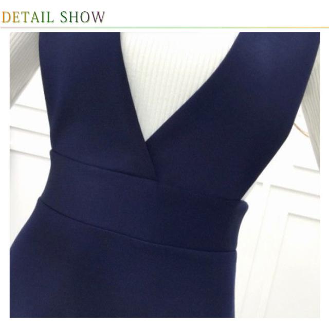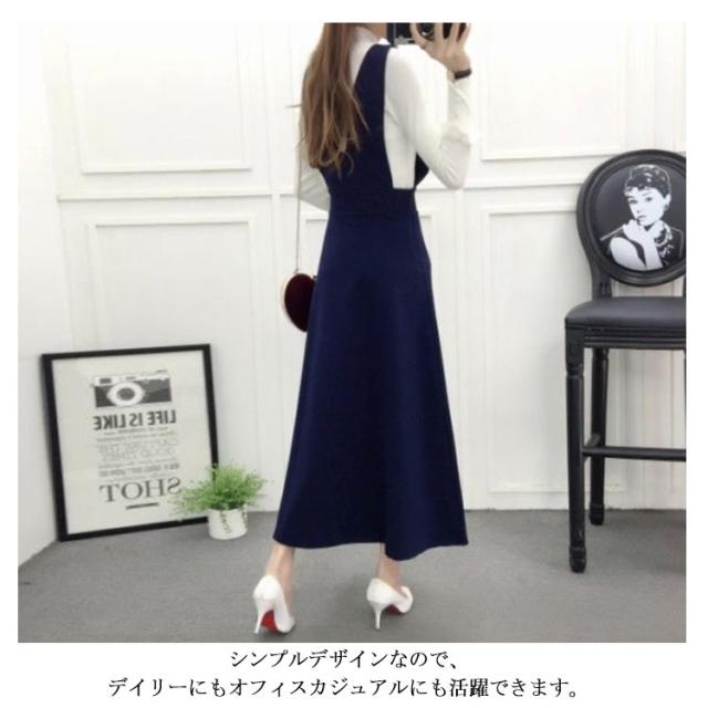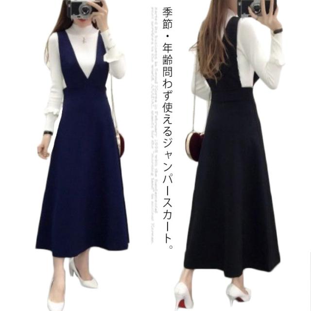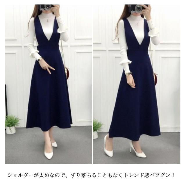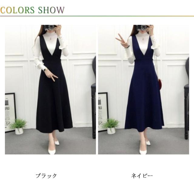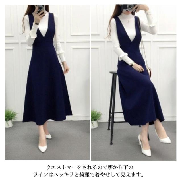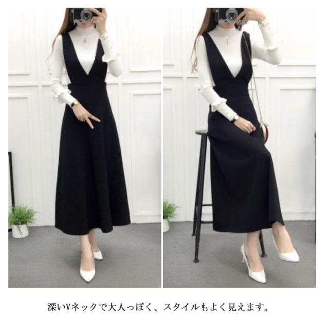 【送料無料】深めVネック ジャンパースカート ワンピース サロペワンピ ブラック ネイビー ドレス サロペット ロングスカート フレア Aライン ノースリーブ ジャンスカ 重ね着