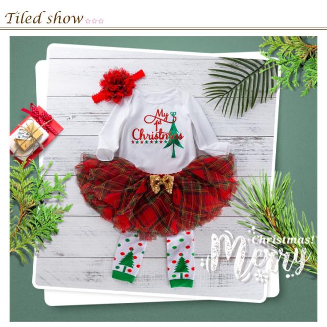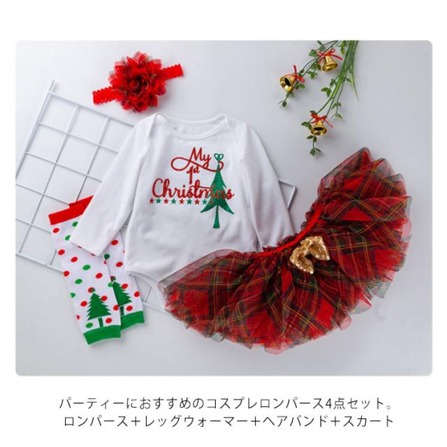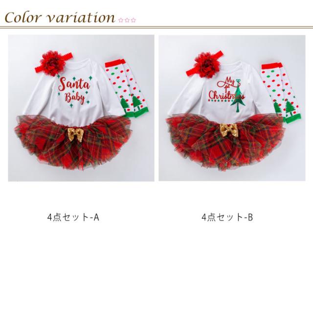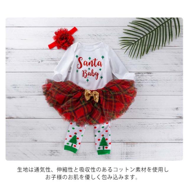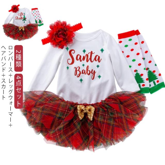 『4点セット ロンパース+レッグウォーマー+ヘアバンド+スカート』コスチューム ベビー サンタ プレゼント サンタさん サンタクロース コスプレ 服 衣装 ドレス 赤ちゃん 着ぐるみ baby ロンパース 1歳 2歳
