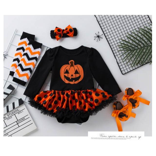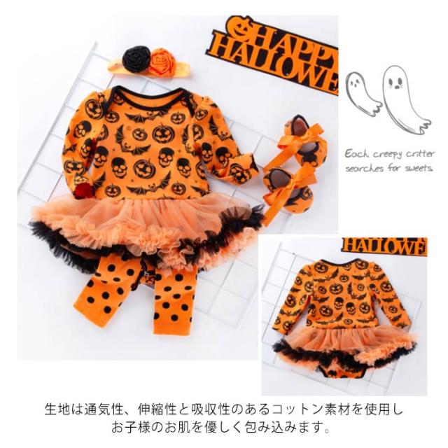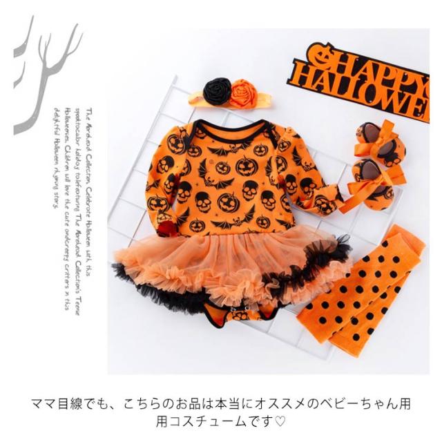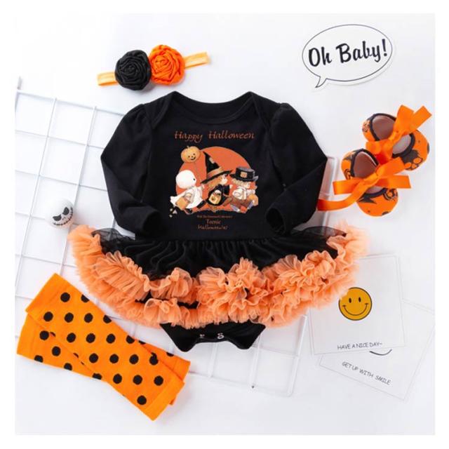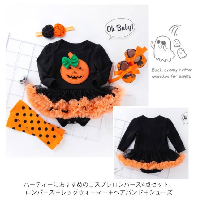 『4点セット ロンパース+レッグウォーマー+ヘアバンド+シューズ』コスチューム ベビー ハロウィン ハロウィーン コスプレ 服 衣装 ドレス 赤ちゃん 着ぐるみ baby ロンパース 1歳 2歳 変装 仮装 ベビーコスチューム 仮装 セットアップ