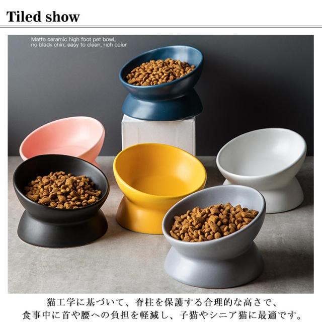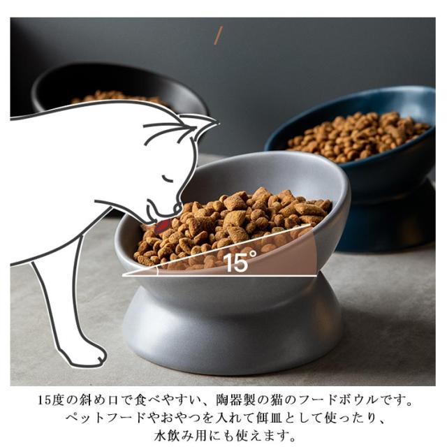 猫 食器 陶器 フードボウル 犬 犬用 餌入れ スタンド 脚付 傾斜 食べやすい 猫用 ねこ いぬ ウォーターボウル 水飲み セラミック 子猫 シニア 高齢 餌皿 小型犬 食器台 ペット用食器 給水器 給餌器 高さ おしゃれ かわいい 北欧 ネイビー グレー ブラック ホワイト